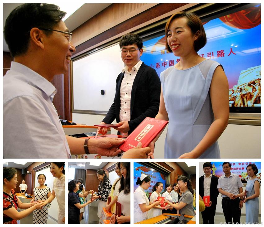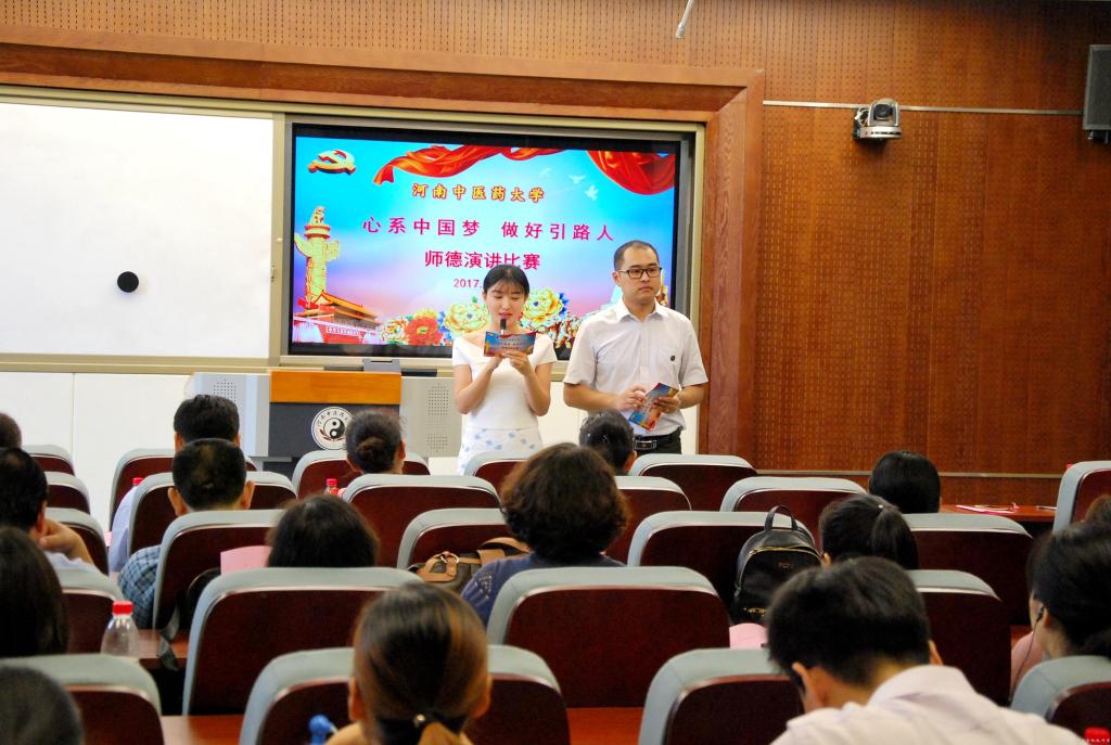 比赛过程中参赛选手妙语连珠引来掌声不断,他们或激情澎湃,或娓娓道来,为评委和观众讲述了一个个感人的师德故事,围绕“心系中国梦 做好引路人”这一主题,表达着要做学生锤炼品格、学习知识、创新思维、奉献祖国的引路人和坚持教书和育人相统一,言传与身教相统一,潜心治学与关注社会相统一,学术自由与学术规范相统一的信心和决心。全体与会人员被选手们的精彩演讲深深打动着,和选手们共同感受作为教育工作者以德立身、以德立学、以德施教,成为学高为师、身正为范的践行者的成就感。来自一附院的选手关徐涛、李妍从小事说起,从细处挖掘,以充实的内容、真挚的感情、生动形象的语言讲述着医德高尚、治学严谨的高萍老师和用真情厚爱洒满援疆之路的梁冰老师的师德事迹,获得现场观众热烈回应,双双捧得一等奖。来自二附院的李楠森、梁艺潇、药学院的刘亚敏获得二等奖,来自外语学院的李蕊、人文学院的陈层、基础医学院的王瑾瑾、机关的张锦莹、体育部的郝震获得三等奖。