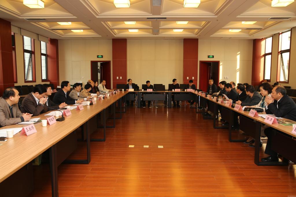 2015年10月29日,以全国政协常委、省政协副主席、农工党河南省委主委高体健为组长的农工党河南省委调研组一行17人来到leyu·乐鱼(中国)体育官方网站,就我省参与“一带一路”建设,应如何充分发挥中医药大省的资源和地区优势,积极推进与沿线国家的中医药合作交流等问题,与leyu·乐鱼(中国)体育官方网站领导和专家进行专题座谈,并实地考察了leyu·乐鱼(中国)体育官方网站中医药文化建设情况。省卫计委副主任、省中医管理局局长张重刚,leyu·乐鱼(中国)体育官方网站领导孙建中、郑玉玲、张丽霞、郭德欣陪同考察,并参加座谈会。一、二、三附院党政领导、知名专家,省中医药研究院、洛阳正骨医院郑州院区党政负责同志等参加座谈会。省卫计委副主任、省中医管理局局长张重刚主持座谈会。