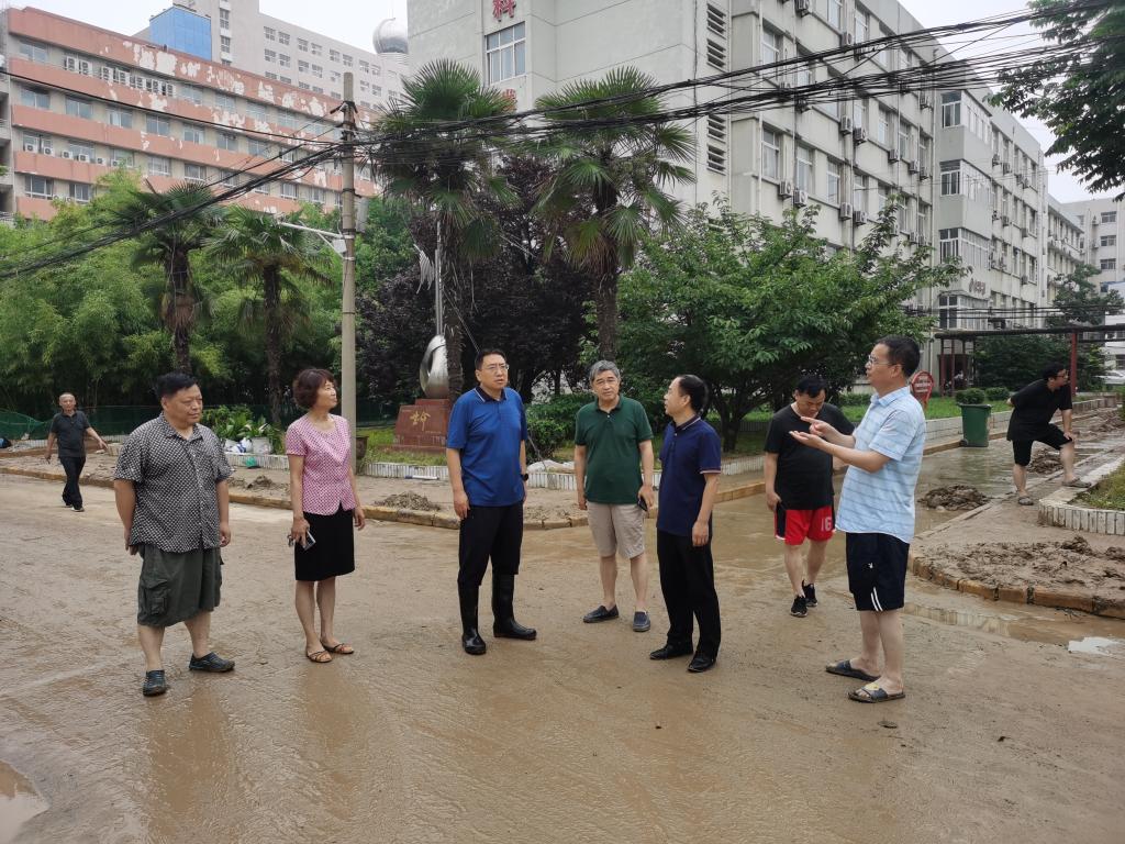 本网讯(文/图孙璐 胡兴旺)7月22日上午,校党委书记别荣海、校长许二平分别再次来到受灾严重的三附院察看灾情、指导复工复诊工作。校党办、校办等部门人员陪同。