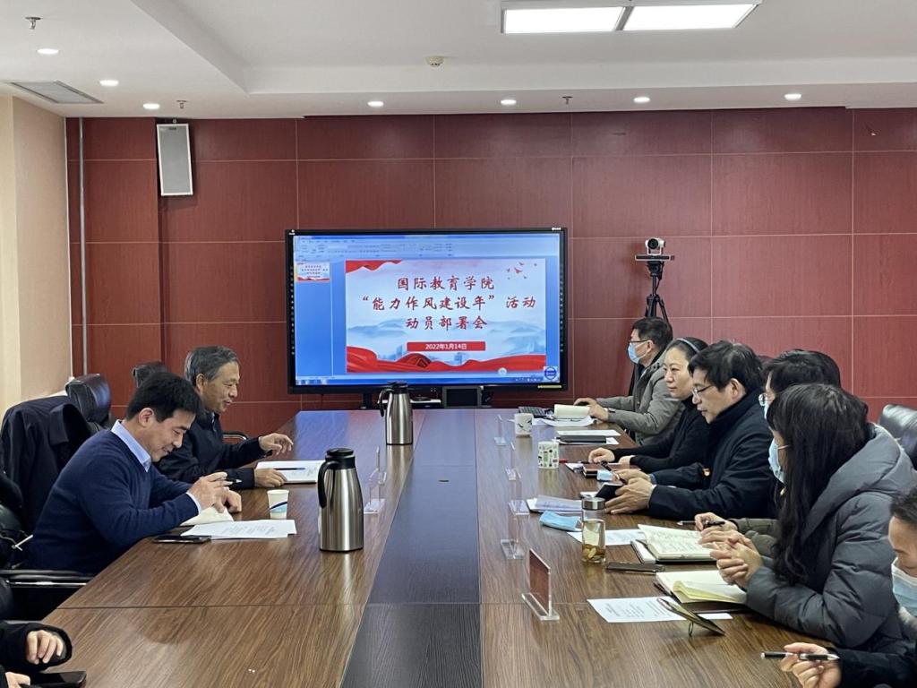 本网讯(文图/张婷婷 孙珠珊)2022年1月14日下午,国际教育学院在龙子湖校区6号楼1101会议室召开“能力作风建设年”活动动员部署会,校党委委员、副校长徐江雁,党委组织部副部长冯志毅莅临指导,学院全体领导班子成员和全体教职工参会。会议由院长周友龙主持。