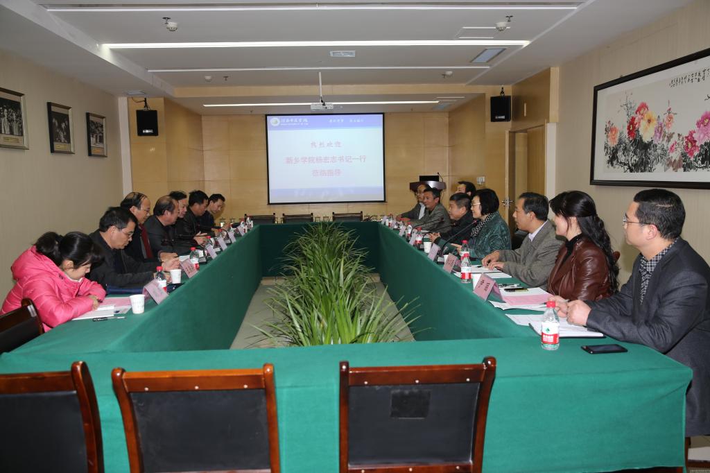 2014年11月11日,新乡学院党委书记杨宏志、副校长闫宏斌等一行7人来到leyu·乐鱼(中国)体育官方网站考察交流,学校党委书记孙建中、院长郑玉玲、党委副书记、工会主席段荣章带领组织部人事处、党院办负责同志陪同来宾参观了学校南大门、仲景文化广场。随后,召开了座谈会,会议由党委副书记、工会主席段荣章主持。