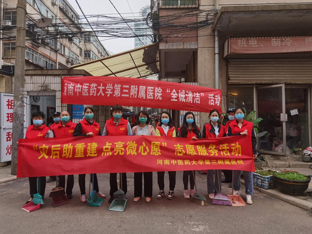 本网讯(文/图 任聪颖)为贯彻落实党史学习教育成果,扎实开展“我为群众办实事”实践活动,助力常态化疫情防控,恢复生产生活秩序、提高辖区居民健康水平,9月24日上午,三附院开展“灾后助重建 点亮微心愿”全城清洁志愿服务活动。