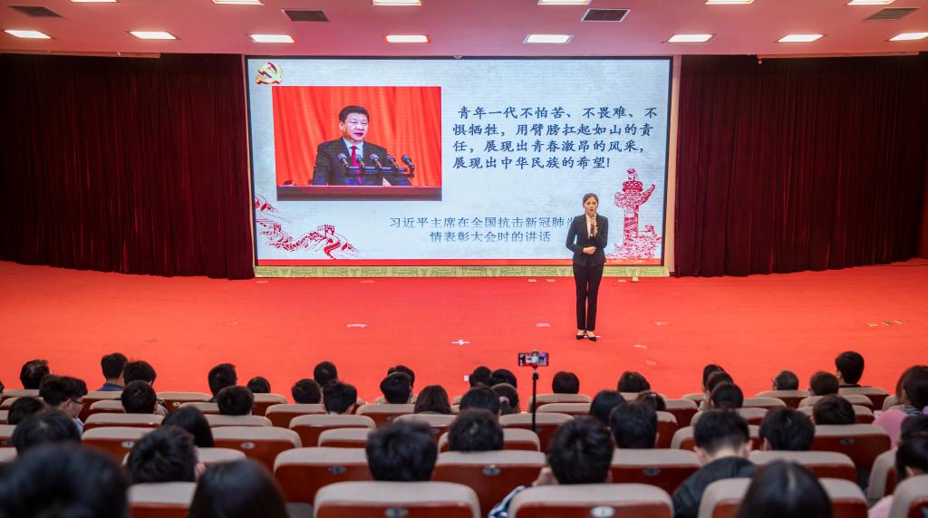 本网讯(文/郭薇 图/郭寅虎)为庆祝中国共产党成立100周年,充分发挥学生社团在校园文化建设中的育人作用,2021年4月6日下午,第九届大学生社团文化节开幕式暨“百年党史青年说”演讲比赛在图书馆第一报告厅举行。校党委副书记、工会主席张小平,校党委宣传部、学工部、研工部、校团委、马克思主义学院等院部负责人,各二级学院党委副书记、团干老师和学生代表等200余人共同参与本次活动。开幕式由校团委书记高磊主持。