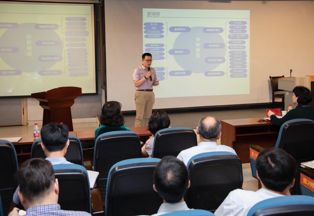 会上,新锦成数据有限公司副总经理张景岫从就业竞争力、就业特色、深造与创业、教育教学评价、各专业评价、学生指导与服务、母校综合评价七个方面,对毕业生就业率、专业相关度、就业满意度、教育教学评价、专业课程评价、后勤服务、母校满意度等内容进行解读,详细分析了2017届毕业生社会需求与人才培养质量,在肯定成绩的同时,也指出了毕业生社会需求与人才培养质量方面存在的不足,并提出了中肯建议。
