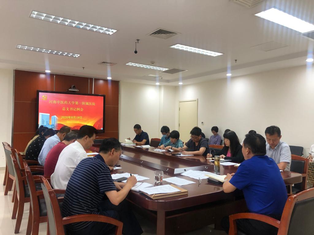 本网讯(文/焦钧 图/孔得希)为进一步推动以案促改工作落实落细,2020年8月19日下午,一附院召开总支书记以案促改工作落实会。一附院党委书记翟剑波、纪委书记段其波、党委副书记张晓东,全体党总支书记、医院以案促改领导小组办公室成员,相关部门负责人参加会议。会议由张晓东主持。