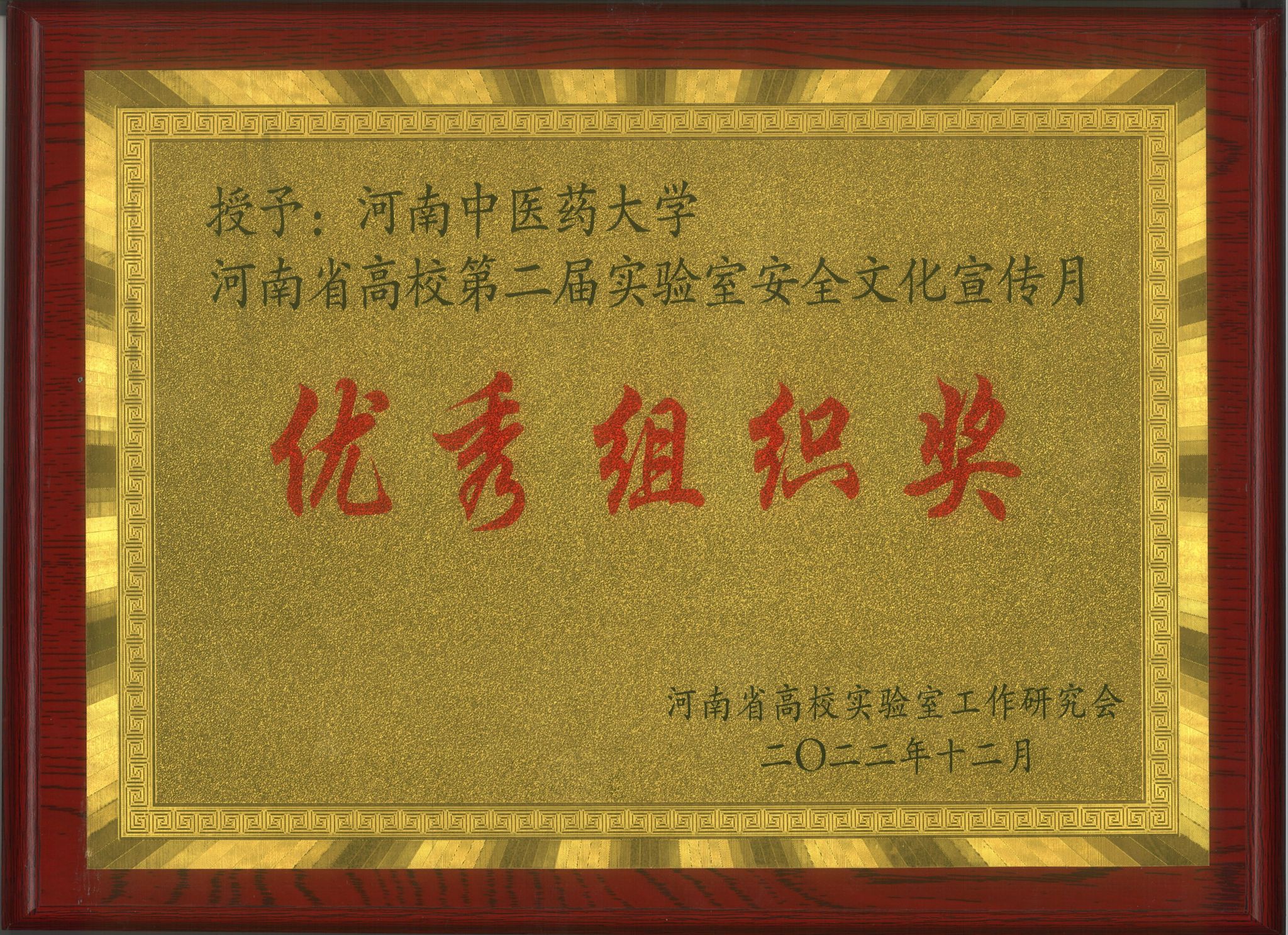“河南省高校第二届实验室安全文化宣传月”优秀组织奖