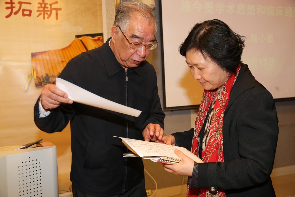 讲座结束后,郑玉玲校长对年届高龄的施小墨先生莅临leyu·乐鱼(中国)体育官方网站开展学术讲座表达了由衷的敬意和感谢。对施今墨先生从中西医汇通角度研究、创新、发展、丰富中医学术,重视中医教育、创建中医人才培养新模式,为中医长远发展建言献策等贡献给予了高度评价。郑校长鼓励在座师生,要学习施今墨先生以科学的方法研究中医学术、以执着的态度投身中医临床的严谨治学和勇于实践的精神,为中医事业不断发展做出应用的贡献。