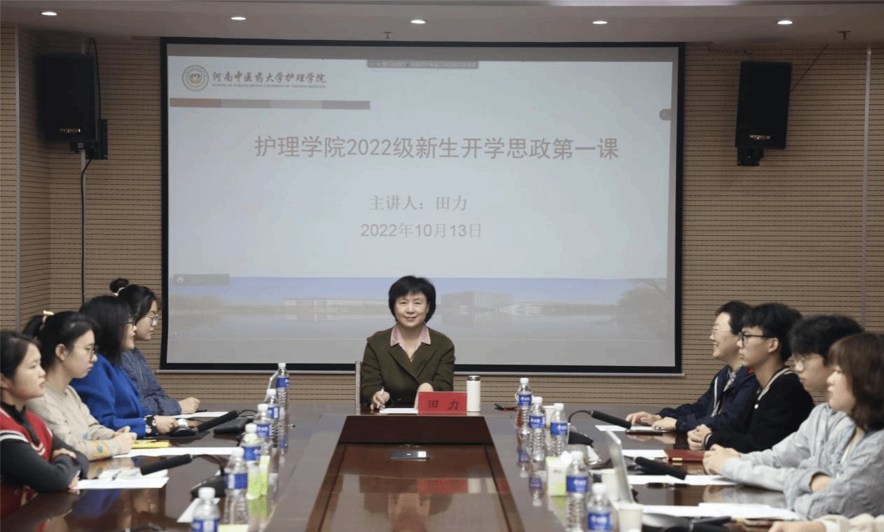 本网讯(文/高山 图/王政博 邱艺萌)为全面贯彻党的教育方针,落实立德树人根本任务,扎实推进学校关于上好“开学思政第一课”的工作要求,2022年10月13日上午,校党委委员、副校长田力赴护理学院,通过线上线下相结合的方式讲授2022年秋季新生开学思政第一课并与师生一起座谈交流“我们这十年”感想体会,护理学院党委副书记马慧玲、副院长秦元梅、学院辅导员、2022级研究生及本科生代表参加会议。会议由马慧玲主持。