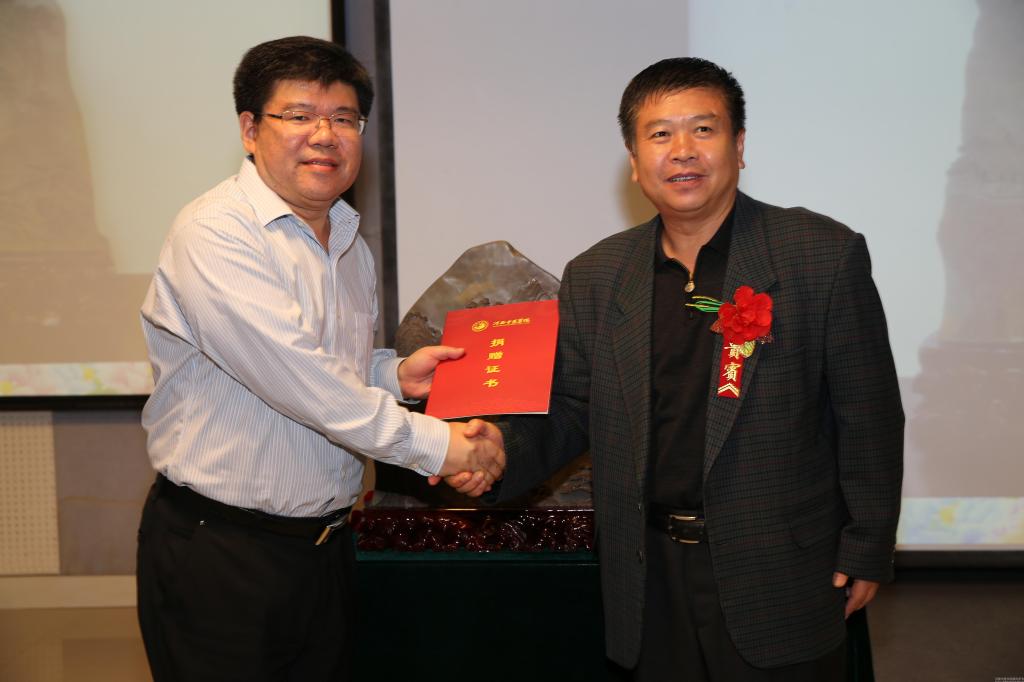 党委书记孙建中向79级校友代表马宪民颁发捐赠证书并致谢