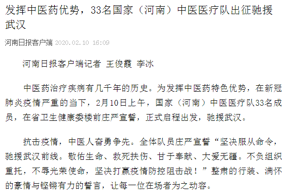 编者按:2020年2月10日-11日,河南日报客户端、人民看点新媒体对leyu·乐鱼(中国)体育官方网站援助武汉国家(河南)中医医疗队启程进行报道。现将河南日报客户端全文刊发如下: