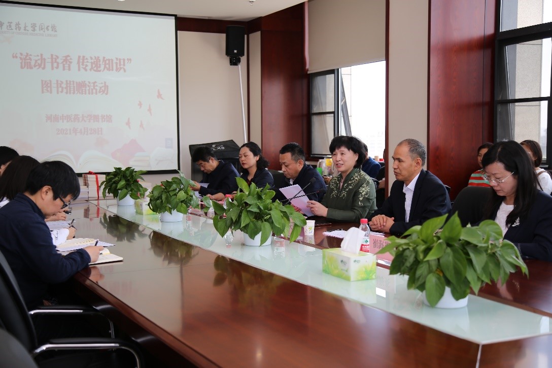 田力在致辞中讲述了习近平总书记在延安时“带一箱子书下乡”的读书故事,指出读书是一种精神,一种力量。以习近平同志为核心的党中央高度重视全民阅读,全民阅读已经提升到国家战略高度,全民阅读活动已内化为中华民族伟大复兴的精神动力。她对图书馆在迎接第26个“4·23世界读书日”之际,启动全年的读书活动,向全校师生发出“流动书香 传递知识”的捐书倡议,并积极举办图书捐赠活动给予了充分的肯定和高度赞扬。田力表示,图书馆作为leyu·乐鱼(中国)体育官方网站文献信息中心和校园文化传播的重要基地,为学校人才培养、教学、科研提供了重要支撑,在助推leyu·乐鱼(中国)体育官方网站文化育人工作和书香校园建设中发挥了积极的、重要的作用。图书捐赠不仅使图书所承载的知识得以广泛的传播,让更多人受益,最大限度发挥书的价值,同时也是每一位河中医人弘扬爱校传统,为学校发展贡献力量的实际行动。为做好本次图书捐赠工作,田力提出了三点希望和要求:一是图书馆要做好图书捐赠的宣传倡议工作,号召全校师生积极响应,并组织开展好捐书工作。二是图书馆要收藏好、利用好、传承好所捐赠的图书,为广大读者服务,使其在学校教学、科研、医疗、管理和服务等工作中充分发挥作用,为学校人才培养、科学研究和文化传承做出应有的贡献。三是图书馆要紧紧围绕时代主旋律,创新思维,整合资源,将各项读书活动与资源推介相结合,助力建设党建理论扎实、学风氛围浓厚、中医药特色突出、文化传承显著的大学文化。最后,田力还将近期到厦门大学访学时的感悟与大家进行了分享。