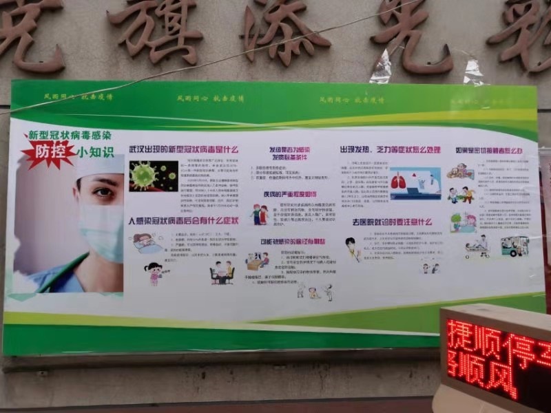 全方位开展防控知识的宣传教育,在食堂、操场、教职工公寓等开放公共场所的重要位置张贴安全防护横幅、展板,编辑和转发疫情防控微信,使师生员工广泛知晓防控知识,做好自我防护。