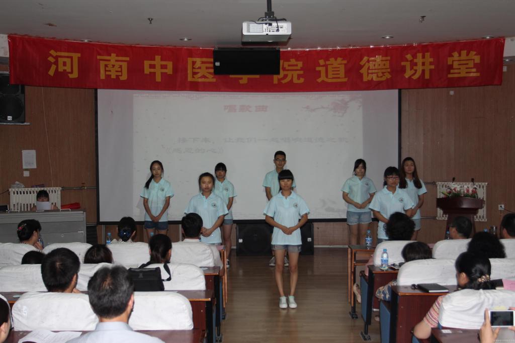 本期道德讲堂共分自省三问、唱歌曲、学模范、发感悟、诵经典、送吉祥六个环节进行。伴随着柔和的音乐,与会人员扪心自问“自己的心诚不诚、情真不真、行正不正”。手语表演《感恩的心》唱出了大家心怀感恩、珍惜一切的心声。在“学模范”环节,基础医学院郭艳桦、针推学院王光安、外语学院丹阳和图书馆孟复分别讲述了身边的好老师朱艳琴、朱现民、王洁华和图书管理员的故事,他们爱岗敬业的精神、无私奉献的品格、关爱学生的情怀、精益求精的态度深深感染了大家。该环节结束后,在座老师和同学们都表示受了很大的触动,纷纷踊跃发言,畅谈“感悟”。宣传统战部部长刘保庆首先发言,在简要介绍了道德讲堂的宗旨、目的、形式、要求和内容之后,他说四位老师讲述的一件件、一段段真实生动的故事,传递了满满的正能量,不仅启迪了心灵,还提振了精神。图书馆党总支书记何明举用“榜样不远,就在身边;大道无疆,德行天下”这16个字表达了自己感受,说自己会在感动中与榜样同行,做好身边每件事。几位学生代表也一致表示,听了老师们的感人故事,他们对学校更加了解了,对老师更加热爱了。最后,张丽霞副书记从三个方面与在座师生分享了自己的感悟:一是为道德讲堂的举办叫声好。道德讲堂是进行思想道德教育的新载体和好形式,使听众受到精神洗礼,能起到了净化心灵的作用;二是为优秀教师点个赞。leyu·乐鱼(中国)体育官方网站优秀学生群体的出现源于一大批优秀教师群体的默默耕耘,正是他们以道德修身、为人师表,照亮了学生前行的道路;三是对学生提出希望。大学生正处在世界观、人生观、价值观形成时期,容易受到各种思想影响,因此要提高鉴别力,要有一双善于发现美的眼睛,多向身边的优秀教师学习,以培养自己良好的心理素质和道德品质。