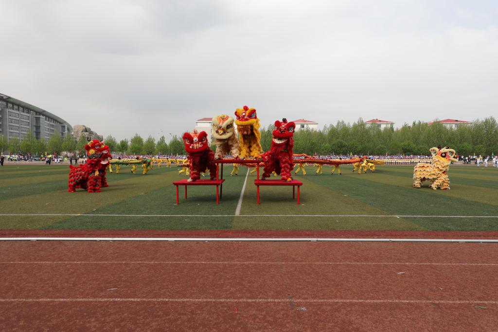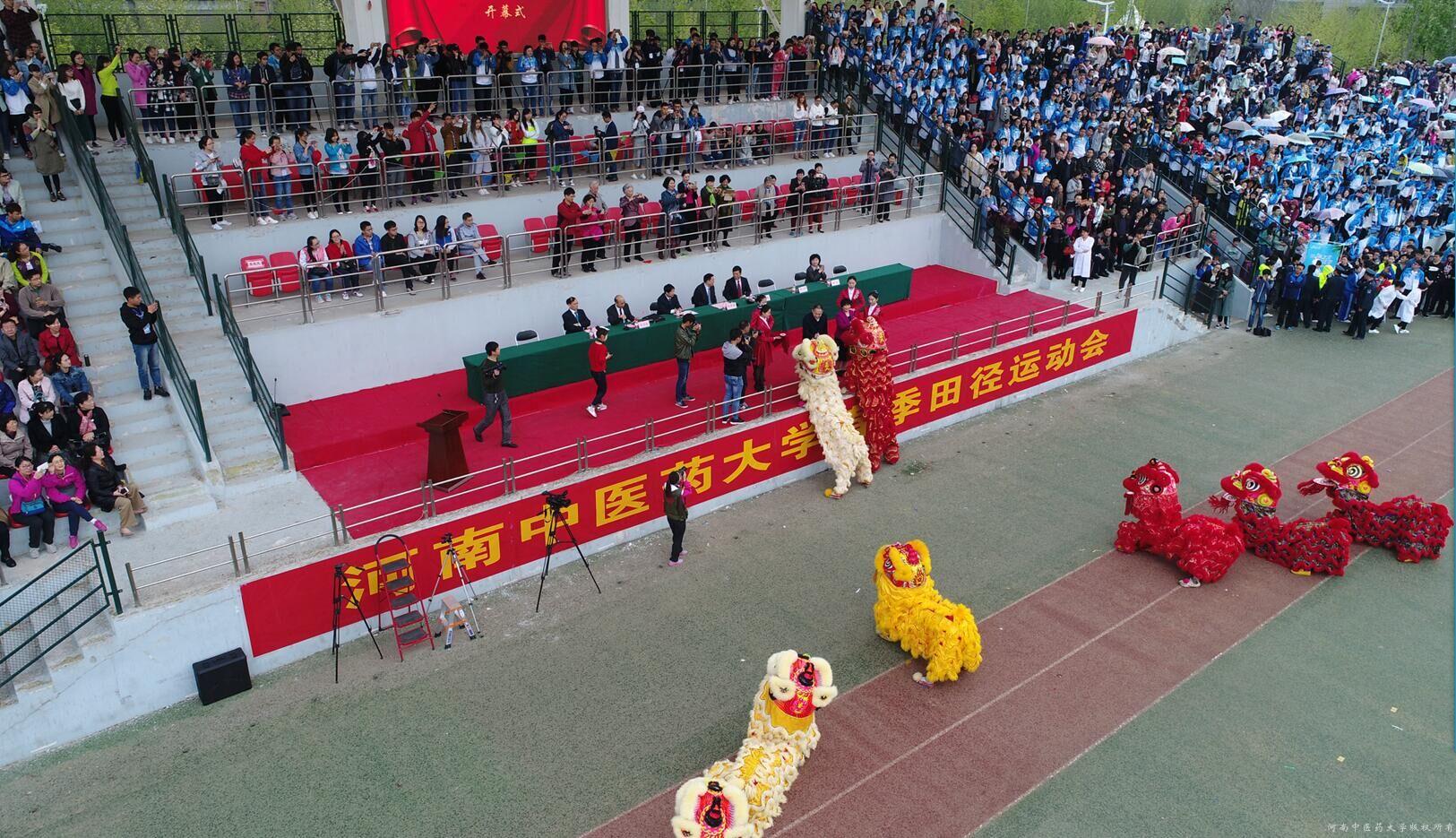 随后,开幕式表演正式拉开帷幕。舞龙舞狮惟妙惟肖,活灵活现,leyu·乐鱼(中国)体育官方网站全国中医药高等学校教学名师丁樱教授、河南最美教师朱现民教授用为雄狮点睛的方式,向广大师生表达了美好的祝愿:一愿全体学生学习进步,再攀新高峰;二愿全体教职工工作顺利,再迈新征程;三愿leyu·乐鱼(中国)体育官方网站,踏梦前行,再创新辉煌。盘旋的长龙上下翻飞,传统的舞狮表演灵活有趣,太极表演柔中带刚,一黑一白之间尽显中医平衡之道。团体操三篇章层层递进,第一篇章“热爱”用“爱我大中医”的队形变化表达对学校的热爱;第二篇章“致青春”用灵动的舞步展现出青春的激昂,400余名学生翩翩起舞,操场上洋溢着青春的美好;第三篇章“好日子”用鼓乐和扇舞传递着祝福,愿leyu·乐鱼(中国)体育官方网站在新一届领导班子的带领下乘风破浪,走向更好的明天。至此,运动会开幕式落下帷幕。党委书记别荣海宣布运动会正式开始。