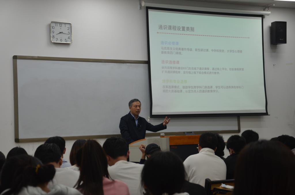 本网讯(文图/李正昌 楚帅)2022年3月10日晚,校党委委员、副校长徐江雁教授走进2021级中医康复班“形势与政策”课堂,以《深入学习习近平总书记教育重要论述》为主题,讲了一堂精彩纷呈的思政课。