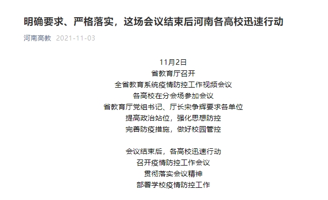 明确要求、严格落实,这场会议结束后河南各高校迅速行动