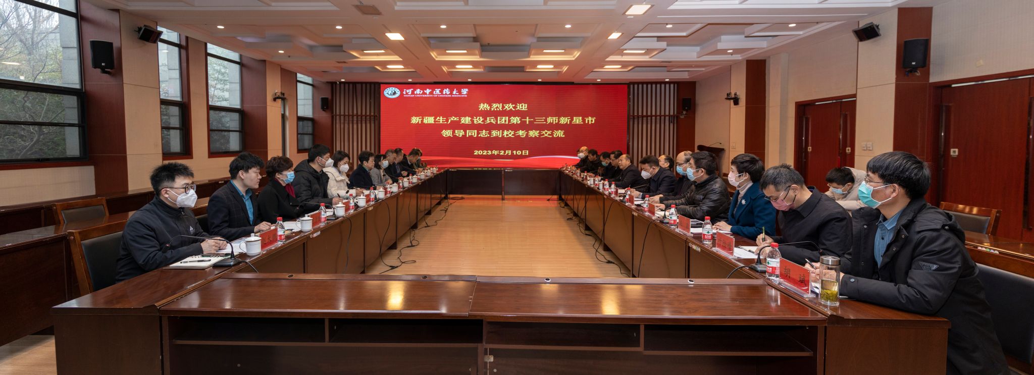 本网讯(文/周沛卓 图/郭寅虎)2023年2月10日上午,新疆生产建设兵团第十三师副师长、卫健委党委书记、主任谢昕一行到leyu·乐鱼(中国)体育官方网站进行调研交流。河南省教育厅高教处副处长张小茜,leyu·乐鱼(中国)体育官方网站党委委员、副校长张加民、苗明三,相关部门、单位负责同志参加座谈交流会。会议由苗明三主持。
