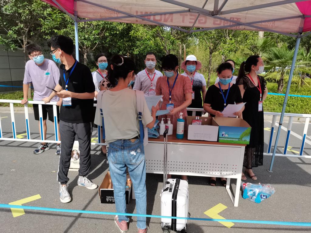 本网讯(文/张文举 图/谭亚男 张文举)2020年8月3日上午,护理学院2017级本科实习生顺利返校。校党委副书记、工会主席张小平带领学校防控办、保卫处及相关部门负责人等前往返校现场查看指导工作。