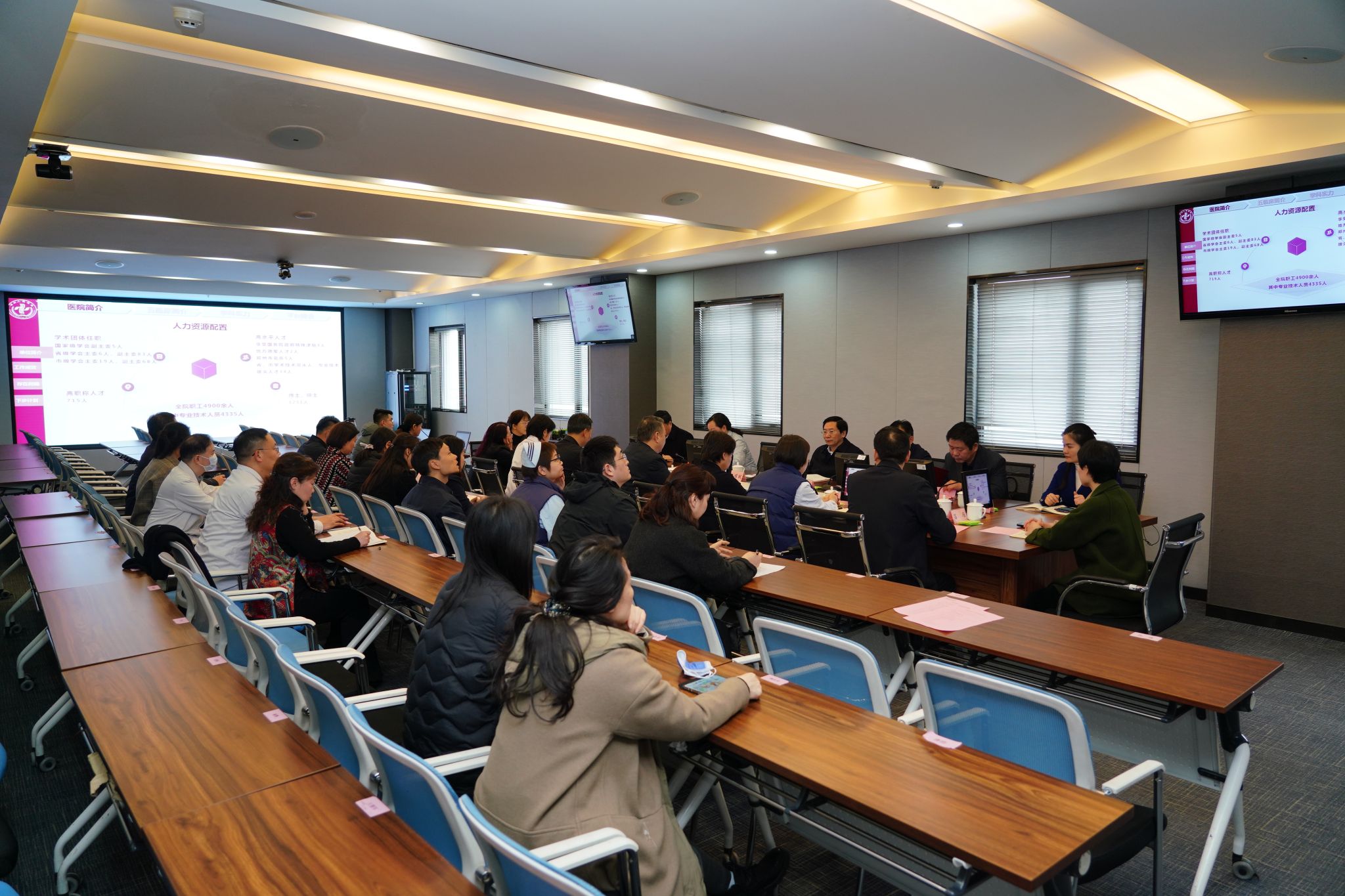 会上,郭磊围绕医院和学院的发展历程、学科建设情况、教学科研平台建设、人才培养成效、医院整体运营情况等方面进行汇报,对存在问题和不足提出下一步工作思路与举措。教学办、学工办、科研办、教育办等相关部门负责人就师资队伍建设、学生成长发展、科研能力提升、继续教育培训等方面进行了座谈交流。