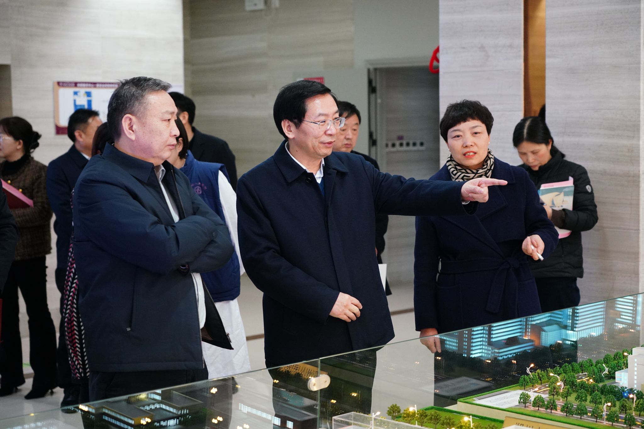 在科研教学中心“一院多区”沙盘处实地调研