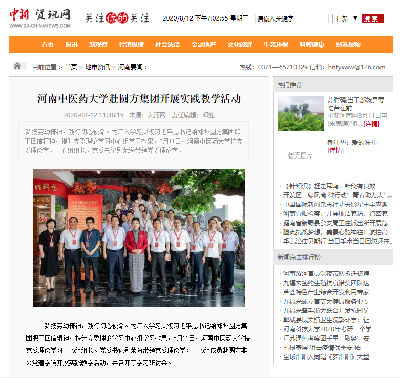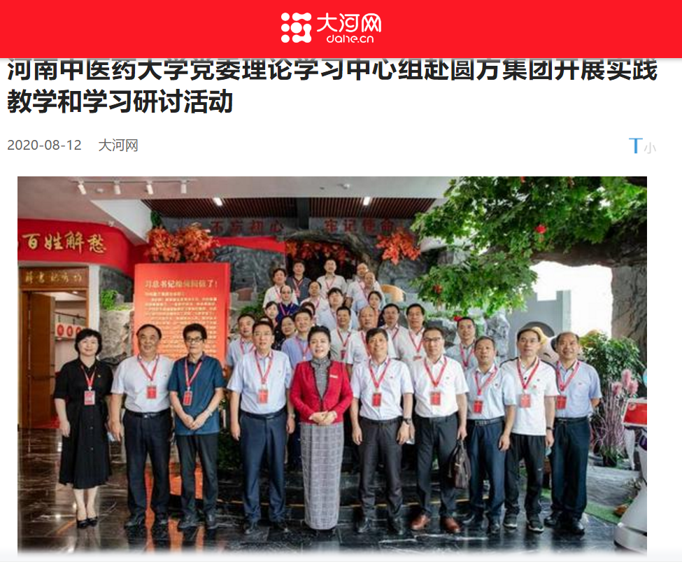 编者按:2020年8月12日,人民网、中新网、大河网、网易新闻等多家媒体对leyu·乐鱼(中国)体育官方网站党委理论学习中心组赴圆方集团开展实践教学和学习研讨活动进行报道。