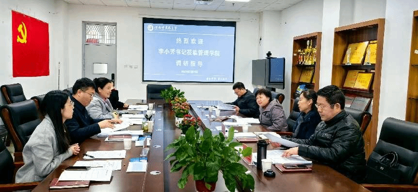 本网讯(文/图 丁俊凌)2025年2月20日,校党委书记李小芳率队赴管理学院开展调研指导,校纪委副书记赵群英、教务部常务副部长禄保平、党委教师工作部部长呼海涛陪同调研。