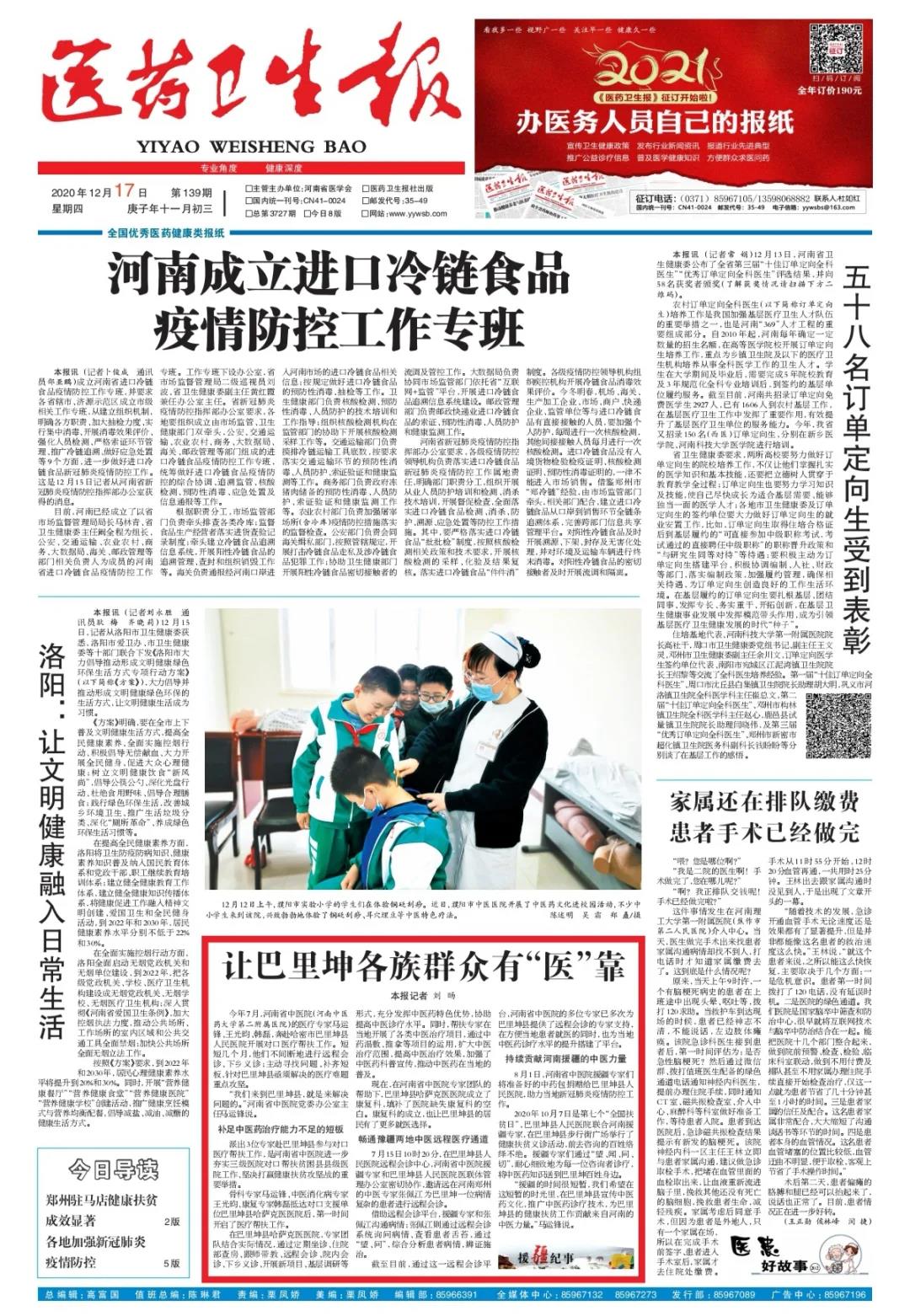 编者按:2020年12月17日,医药卫生报对leyu·乐鱼(中国)体育官方网站二附院马运锋、王光昀、韩磊3位医疗专家奔赴哈密市巴里坤县人民医院开展对口医疗帮扶工作进行报道。现将全文刊发如下: