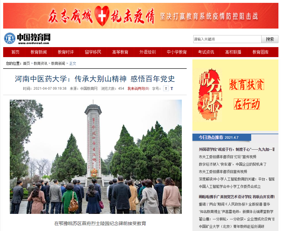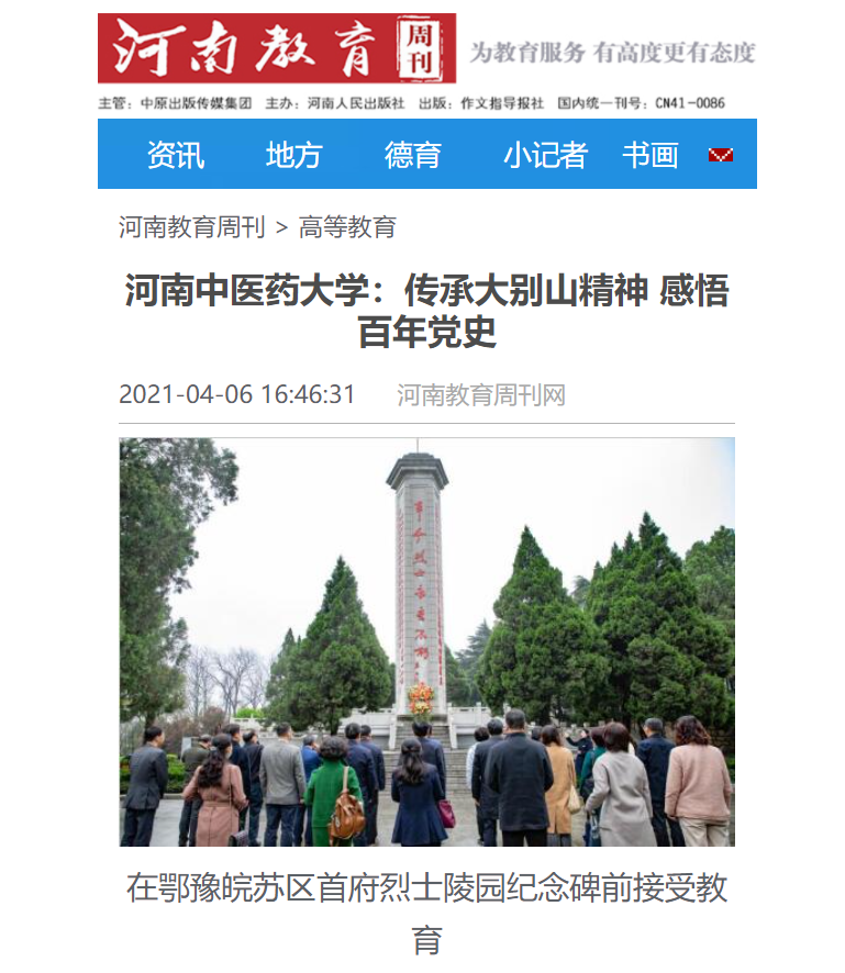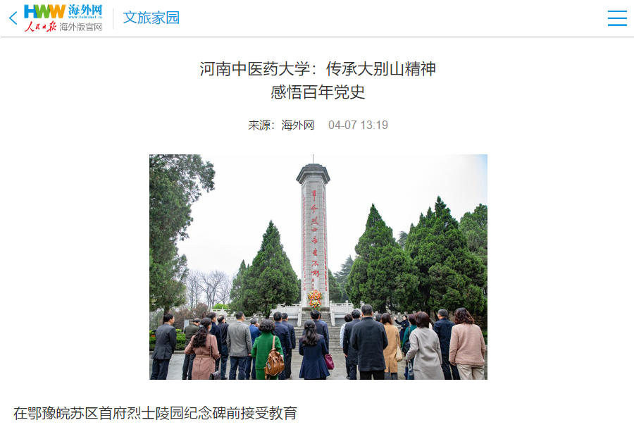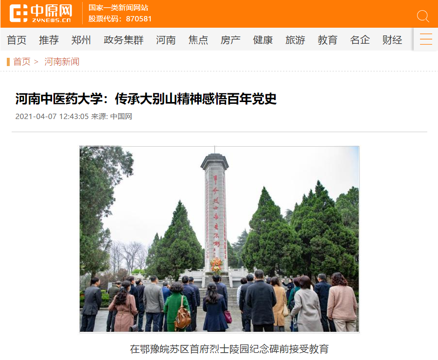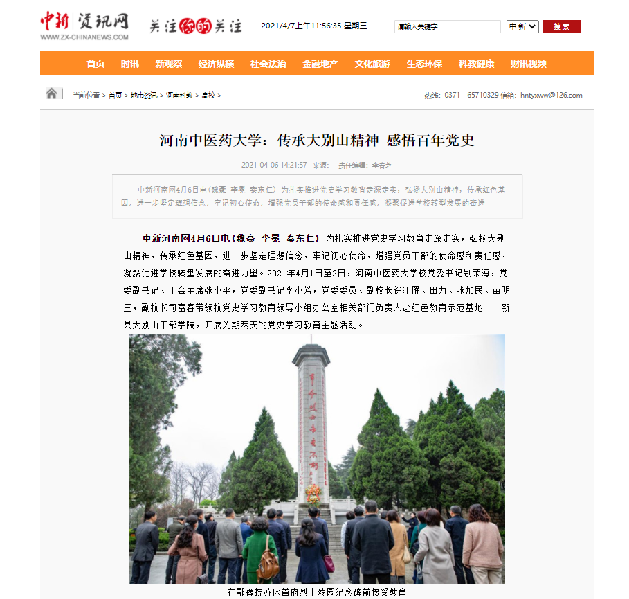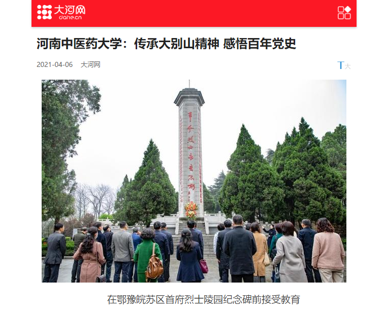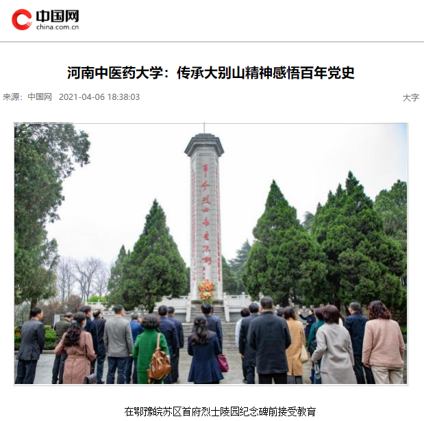 编者按:2021年4月6日-7日,人民日报海外网、人民日报客户端、中国网、中华网、中国教育网、中报网、中闻网、中新资讯网、中华高校网、大河网、顶端新闻、河南教育周刊、中原经济网、河南经济论坛、新豫网、中原网、河南高校资讯网、网易新闻等数十家媒体以《leyu·乐鱼(中国)体育官方网站:传承大别山精神 感悟百年党史》为题,对leyu·乐鱼(中国)体育官方网站党委理论学习中心组赴新县扎实开展党史学习教育进行了广泛报道。