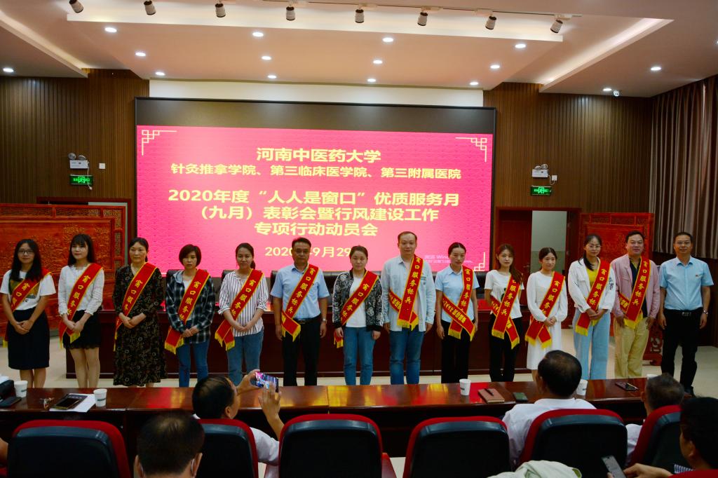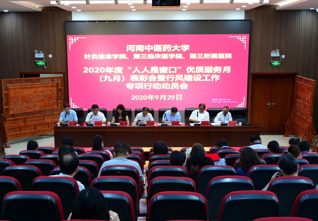 本网讯(文/许丽 卫凤洁 图/田辉 潘向昆)2020年9月29日,三附院召开2020年度“人人是窗口” 优质服务月(九月)表彰会暨行风建设工作专项行动动员会。医院党政领导班子成员、全体科主任、月度窗口服务标兵等参加会议。纪委书记刘会勋主持会议。
