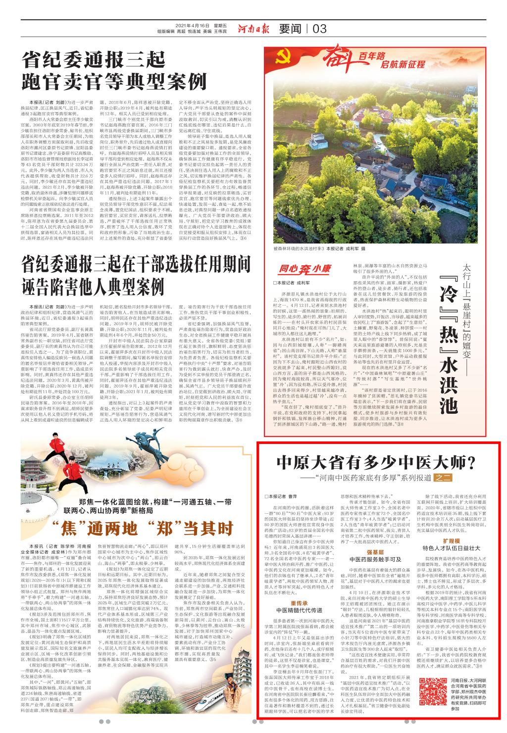 编者按:2021年4月16日,河南日报03版对leyu·乐鱼(中国)体育官方网站国医大师张磊、唐祖宣,全国名中医毛德西,硕士生导师王绍霞等中医药人才家底进行报道。现将全文刊发如下: