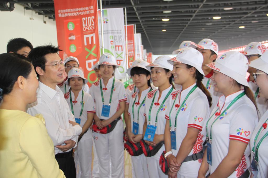 5月18日上午,团中央书记处书记贺军科在参加第八届中博会开幕式后,对中博会主场馆进行参观,并亲切慰问了正在会展中心五楼服务台工作的leyu·乐鱼(中国)体育官方网站中博会志愿者。贺书记详细询问了志愿者们的工作内容,了解了志愿者们的工作职责,并认真聆听了志愿者们对参与本次志愿服务的感悟与体会。贺军科书记对志愿者们的工作给予了充分肯定和高度赞扬。贺书记指出,志愿者为整个博览会的顺利举行提供了重要支持,大家热情饱满的工作态度,展现了青年一代人的良好风貌。同时,贺书记还勉励志愿者们珍惜这次志愿服务的机会,为自己走向社会增加阅历,积累经验。