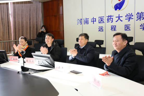 在一附院15楼会诊中心,许二平同派驻到定点救治医院的李素云、余学庆等专家教授,及第八批机场工作队队员进行了视频通话。许二平代表学校教职工向春节期间奋战在新冠肺炎疫情防控一线的同志们表示感谢,高度赞扬了一线工作人员牺牲春节团聚的重要时刻,舍小家、为大家逆行奋战,抗击新冠肺炎疫情的精神,对大家不畏风险,为护佑人民健康恪尽职守表示崇高的敬意。同时叮嘱大家一定要严守操作规范,注意个人防护,祝福大家新春快乐,虎年大吉!希望在新的一年再接再厉,持续奋战,在新冠肺炎疫情防控中充分展现中医人的工作能力和精神风貌,为中医药抗击新冠肺炎疫情防控做出新的贡献。