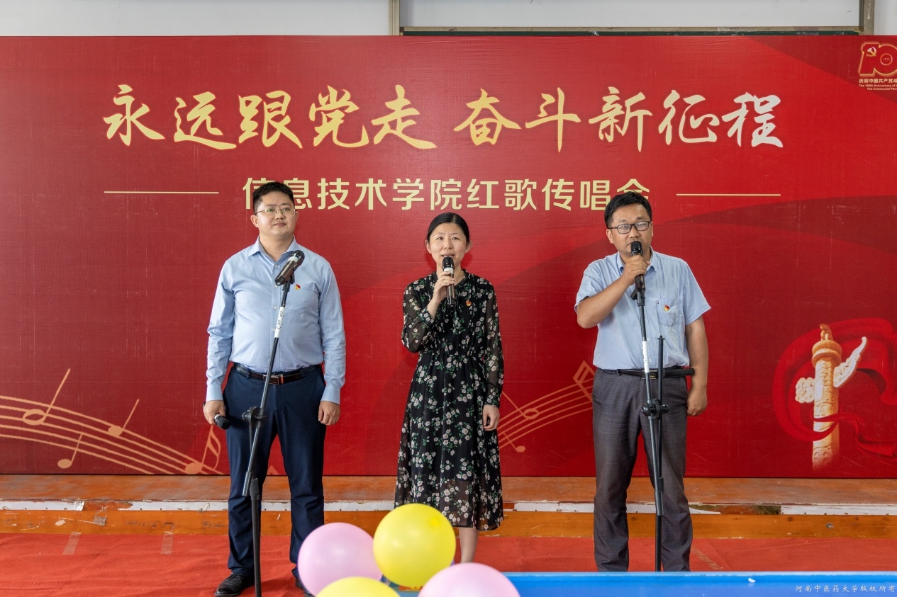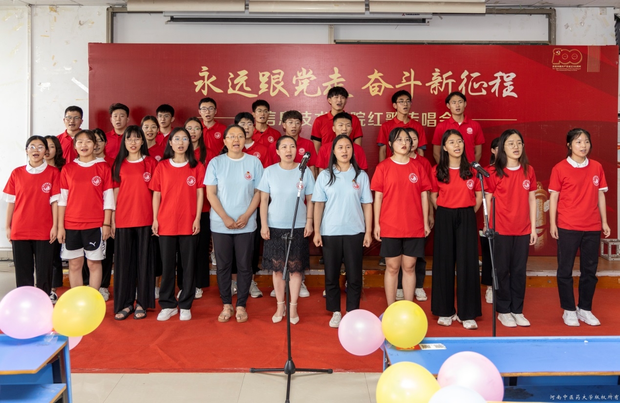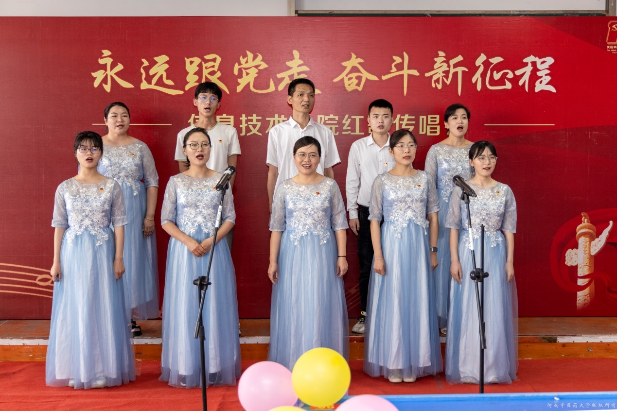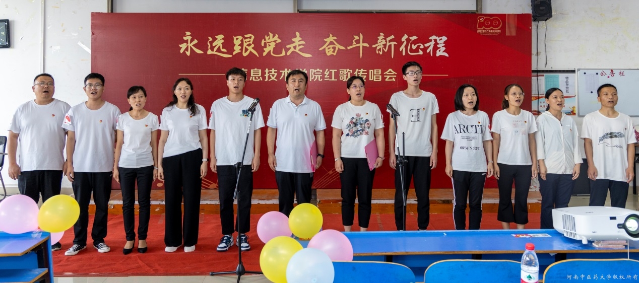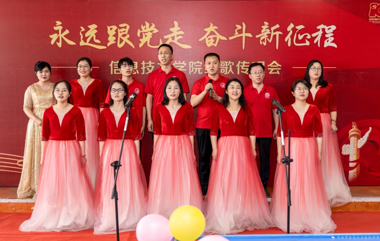 绵延山河天朗清,青春奋斗歌嘹亮。此次红歌传唱活动的开展,不仅丰富了全院师生的文化生活,激发广大师生党员干事创业的信心和决心,同时还增强了坚定不移跟党走的信念。信息技术学院将继续肩负使命让党史学习教育主旋律弦歌不辍,坚守初心促中医药现代化发展守正出奇,以坚如磐石的信心、只争朝夕的干劲向建党100周年献礼。