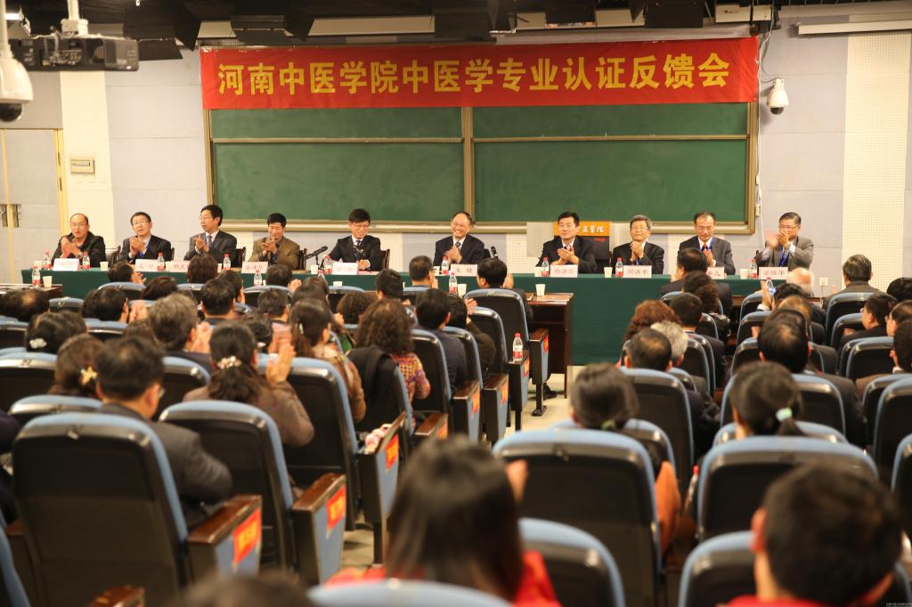 反馈会上,专家组副组长、安徽中医药大学校长王键教授代表专家组宣读了认证意见,他全面介绍了此次现场考查的过程,并对leyu·乐鱼(中国)体育官方网站及中医学专业建设情况作简要说明,从领导班子高度重视、办学定位与思路不断清晰、教学改革积极推进、教师队伍建设不断强化、学生工作扎实有效、临床教学水平不断提升、质量保障体系不断完善、科学研究与管理水平不断得到提升、教育资源不断完善等九个方面内容详细阐述了现场考查意见,并提出针对性建议:一、建议进一步加强内涵建设,注重规模与质量协调发展,加大领军人才引进和高级教师职业发展能力的培育,不断提高教师队伍的综合素质与专业化水平;二、建议进一步树立以学生为中心的教育理念,并内化为广大教职员工的思维方式、行为准则和自觉行动,不断深化教学内容、教学方法以及考试方法改革,提升学生的自主学习能力;三、建议河南省委省政府、教育厅和卫生计生委、中医管理局要继续加大政策支持和合作力度,推动学术自治,提升学校办学层次,促进学校又好又快发展。现场考查专家组认为,河南中医学院中医学专业符合本科医学教育标准中医学专业要求,建议给予完全认可。