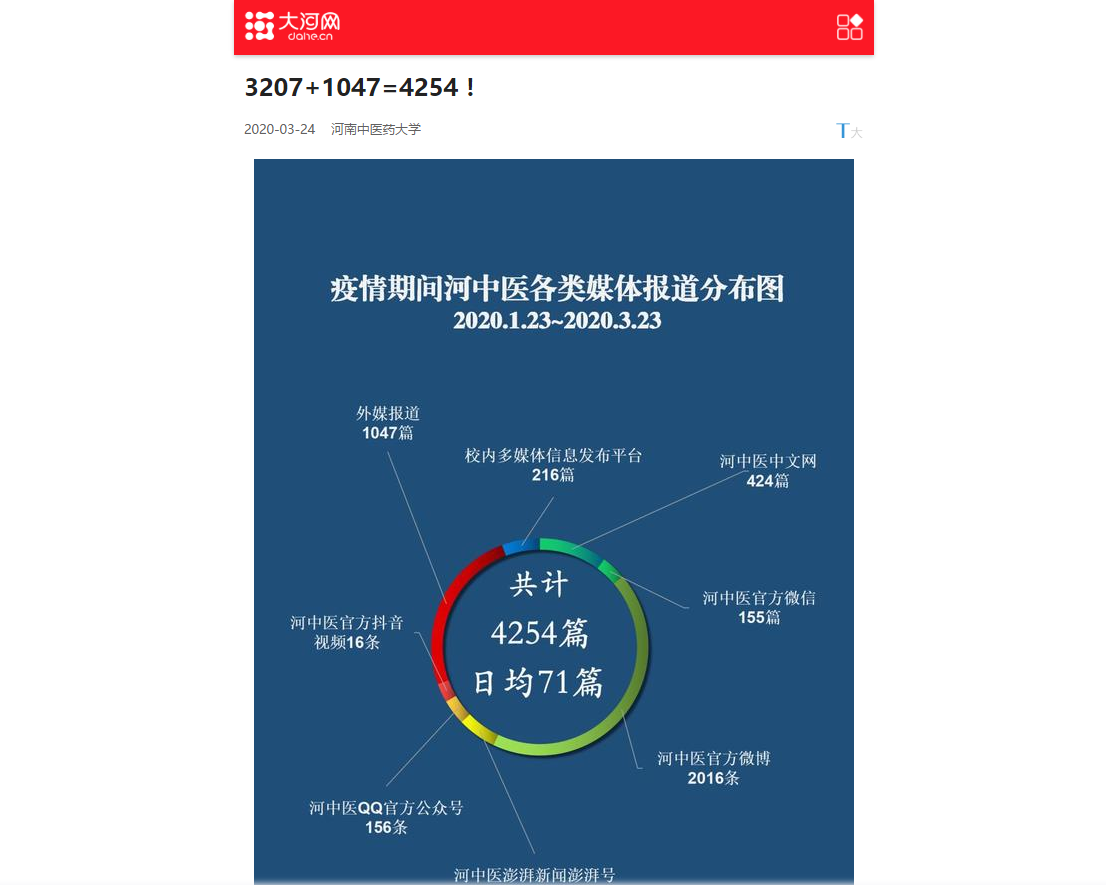 2020年3月23日-24日,大河网、网易新闻对leyu·乐鱼(中国)体育官方网站疫情期间学校与媒体“四级联动”扩大宣传进行报道。