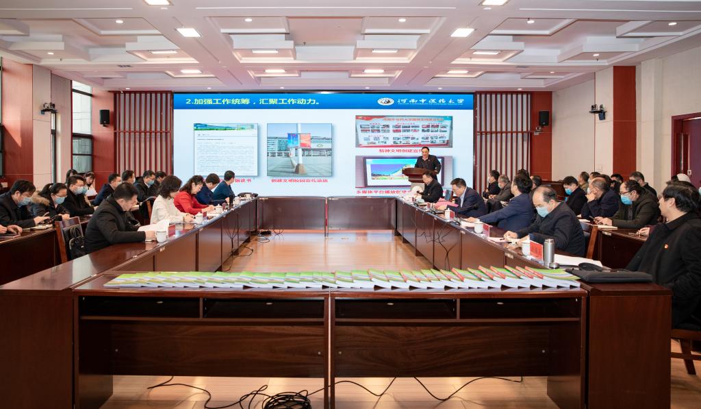 张小平以《文明创建促发展美丽校园谱华章》为题,围绕健全体制机制,夯实创建基础;聚焦六大建设,突出创建成效;弘扬抗疫精神,激发创建动能;借力文明创建,谱写发展新篇四个方面对leyu·乐鱼(中国)体育官方网站2020年度省级文明校园创建工作情况进行了汇报。张小平表示,回首2020年,学校战疫情谋发展,勇担时代重任,彰显了新时代河中医人的使命担当。在今后的工作中,学校将坚持以党的建设为统领,以深化文明校园建设为动力,以早日建成国际知名、国内一流的教学研究型中医药大学为目标,以促进河南中医药高等教育事业又好又快发展为己任,干字当先、奋力前行,为谱写新时代中原更加出彩的绚丽篇章不断创造新业绩,做出新贡献。