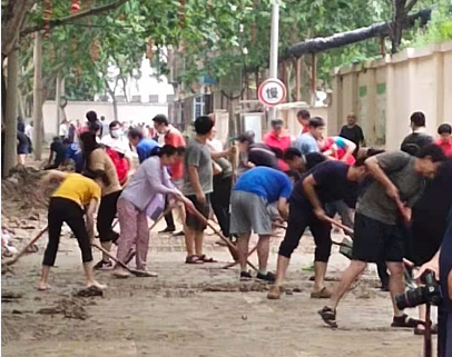 师生转危为安。21日早晨,东明校区积水尚未退去,淤泥沉积严重。王浩然、张莹再次前往校区内各处了解受灾情况,在外部物资无法进入的情况下,积极协调保卫处、后勤服务中心等部门,自发组织进行校园排水、道路清淤等工作,学校餐厅利用现有资源,迅速制作应急食品,保障学生基本生活物资供应,保证正常生活秩序。在学校党委的统一部署和安排下,东明办积极组织、协调、配合学校各部门、各单位开展了河南省第二届学生军事训练营100余名军训官兵、广大教职工志愿者清理道路垃圾、淤泥等系列防汛救灾活动,食堂、宿舍楼、道路上,随处都能看到大家挥洒汗水的身影,在广大师生争分夺秒、分秒必争,团结协作、奋力拼搏下,东明路校区积水已清理完毕,路面和各场地基本清理干净,全力保障东明校区的基本稳定,降低了灾情损失,为后续救灾防汛工作的开展奠定了坚实基础。“面对汛情,作为一名党员,必须排除万难、冲锋在前,把师生的生命财产安全放到第一位,坚决做到越是艰险越向前!”持续奋战了好几天的王浩然、张莹异口同声地说道。