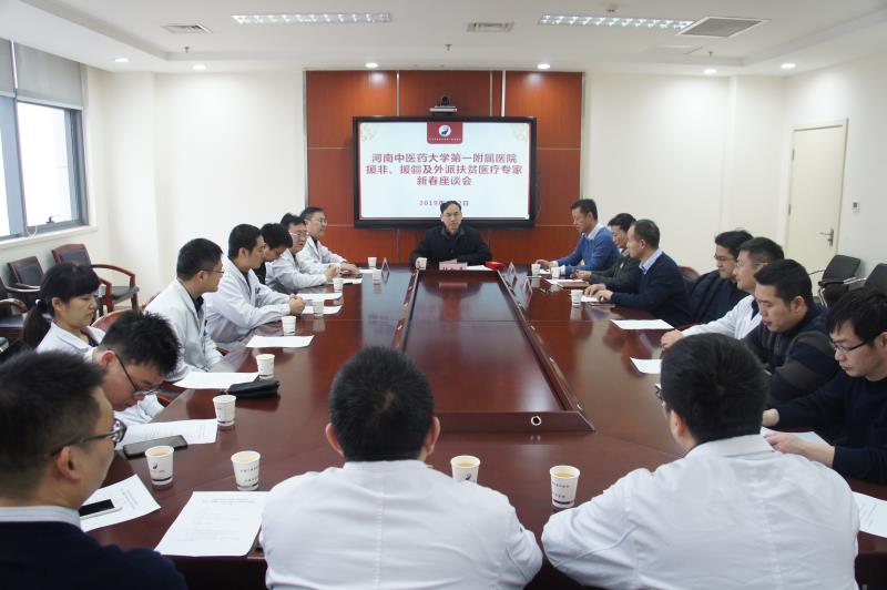 本网讯(文/马彦江 图/郑金铎) 2019年2月2日上午,在一附院举行了援非援疆及外派扶贫医疗专家代表座谈会。校党委委员、工会主席张加民到会慰问了坚守扶贫一线的医疗专家。一附院党委副书记张晓东、副院长赵敏、工会主席张婉红和部分援非援疆及外派扶贫医疗专家代表等20余人参加了座谈。