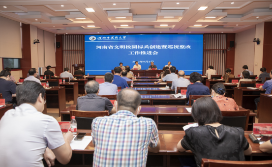 本网讯(文/贾姝 图/秦东仁)2022年9月6日下午,leyu·乐鱼(中国)体育官方网站在龙子湖校区图书馆第二报告厅召开河南省文明校园标兵创建暨巡视整改工作推进会。校长许二平,校党委副书记、工会主席张小平,校党委副书记李小芳,校党委委员、副校长苗明三,各部门、各单位党组织主要负责人参加会议。会议由苗明三主持。