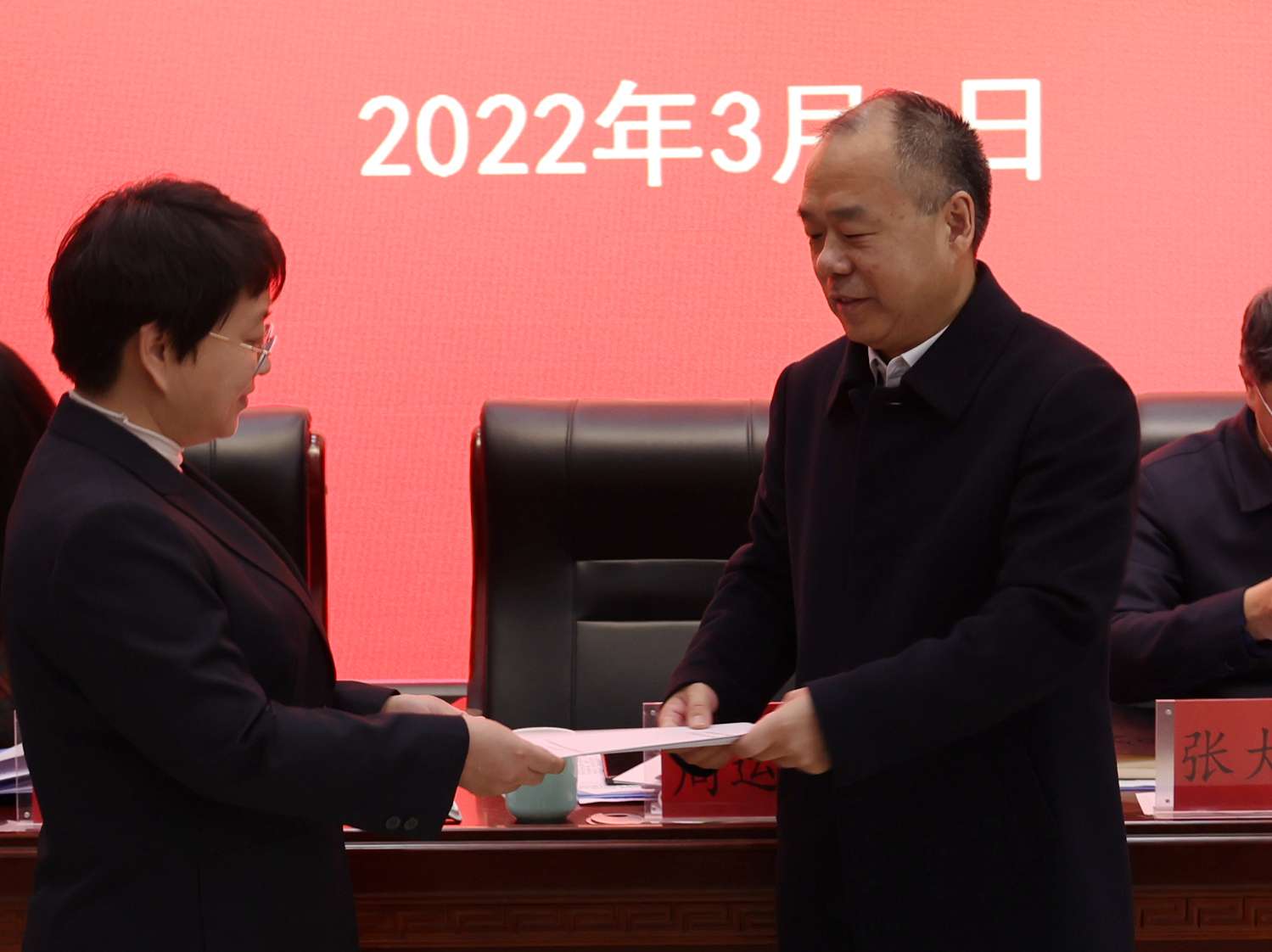 党委副书记焦钧宣读《关于表彰2021年度全面从严治党先进集体的决定》。三附院领导班子成员、各党(总)支部书记及科主任代表向院党委递交了《全面从严治党责任书》。推拿科一病区党支部、宣统医保党支部书记就党风廉政建设及能力作风推进工作进行了典型发言。