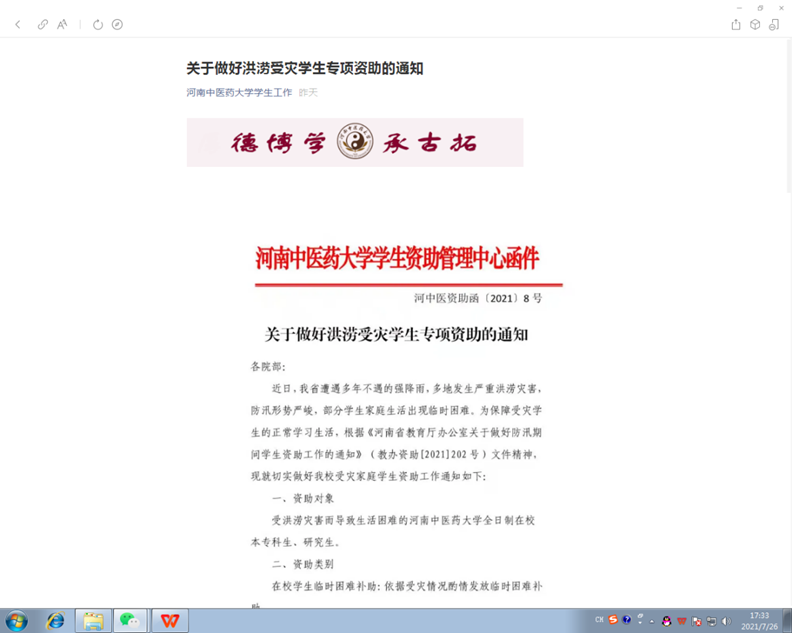 leyu·乐鱼(中国)体育官方网站资助中心对洪涝受灾学生提供专项资助