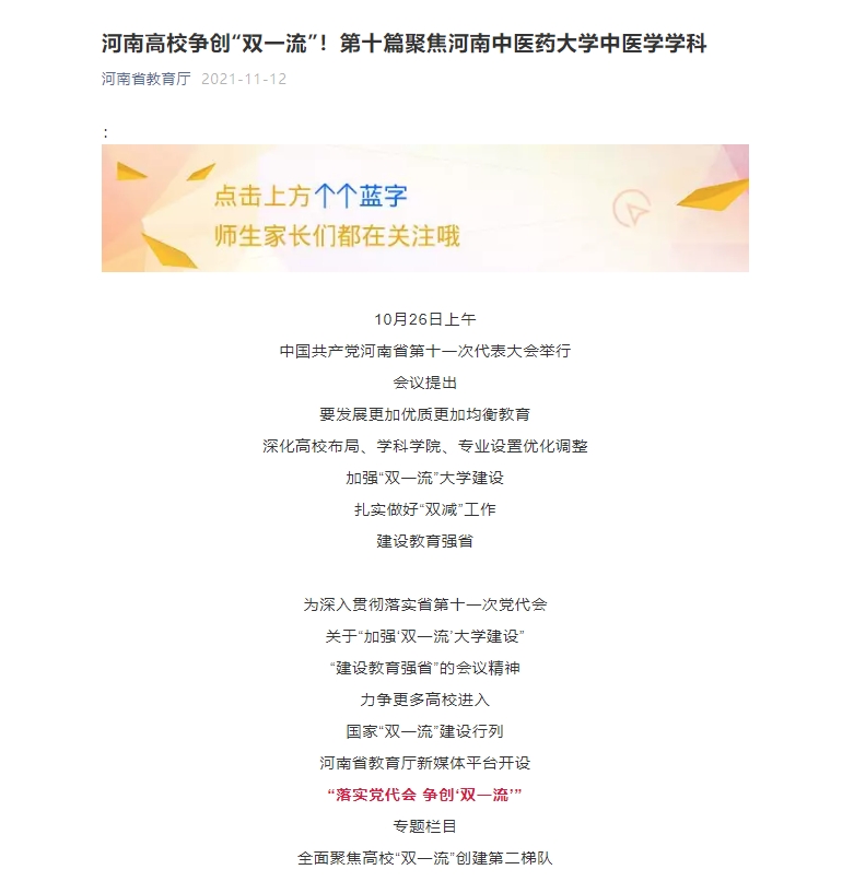 河南高校争创“双一流”!第十篇聚焦leyu·乐鱼(中国)体育官方网站中医学学科
