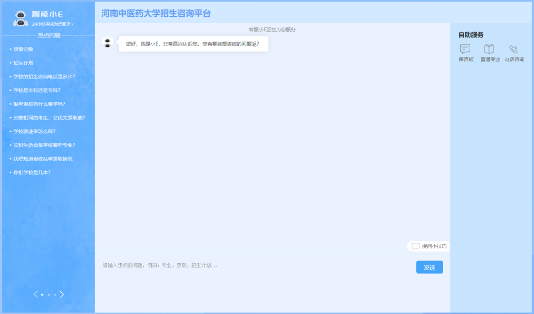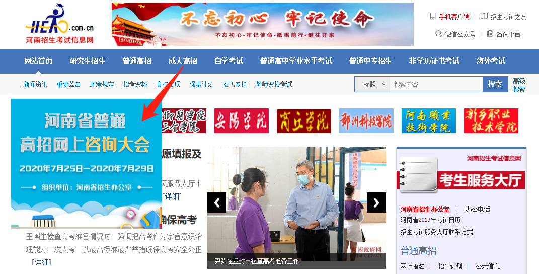 可点击相应栏目查询【招生政策】【招生计划】【历年录取】【学校概况】【院部简介】【专业介绍】等信息。