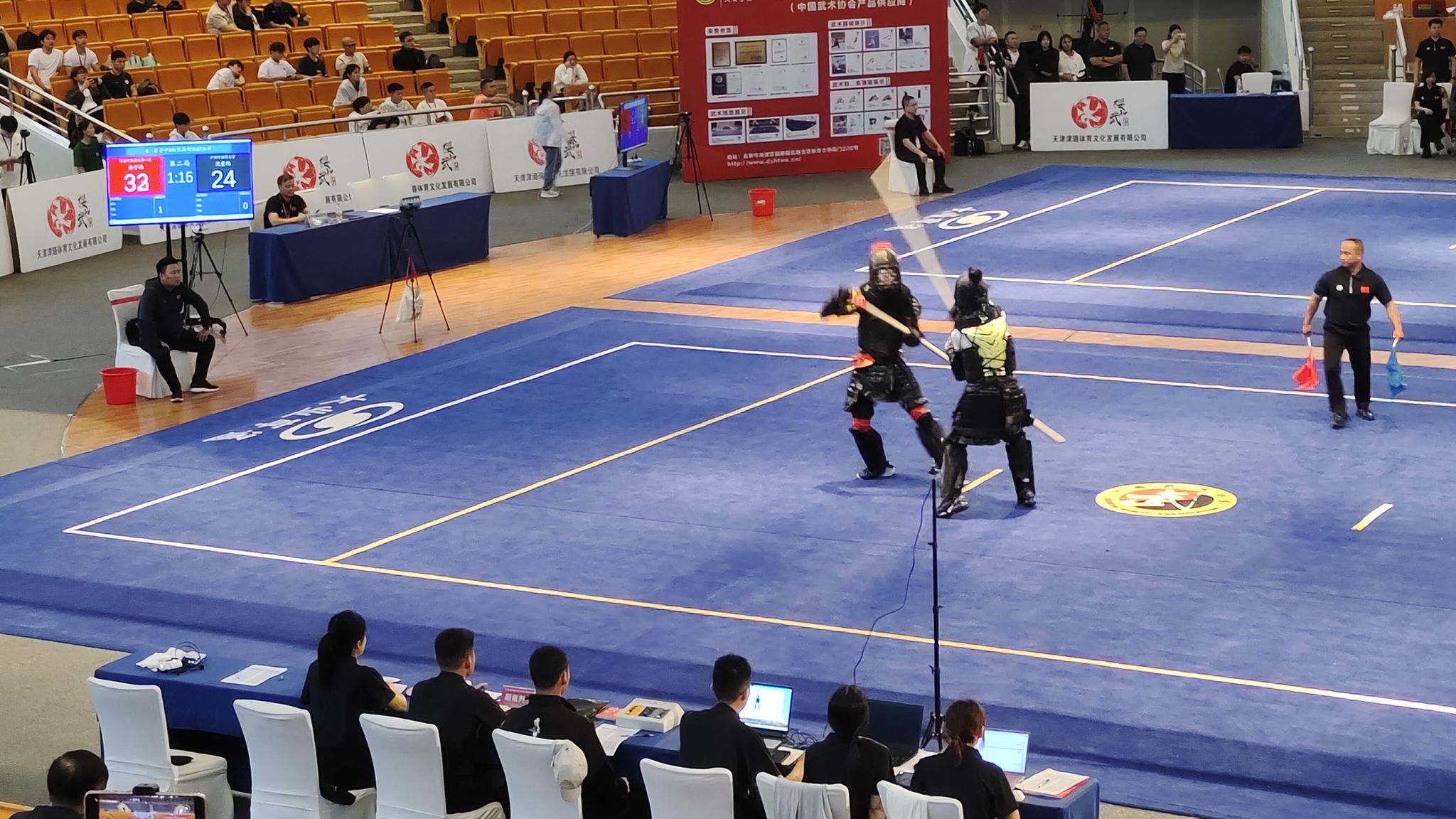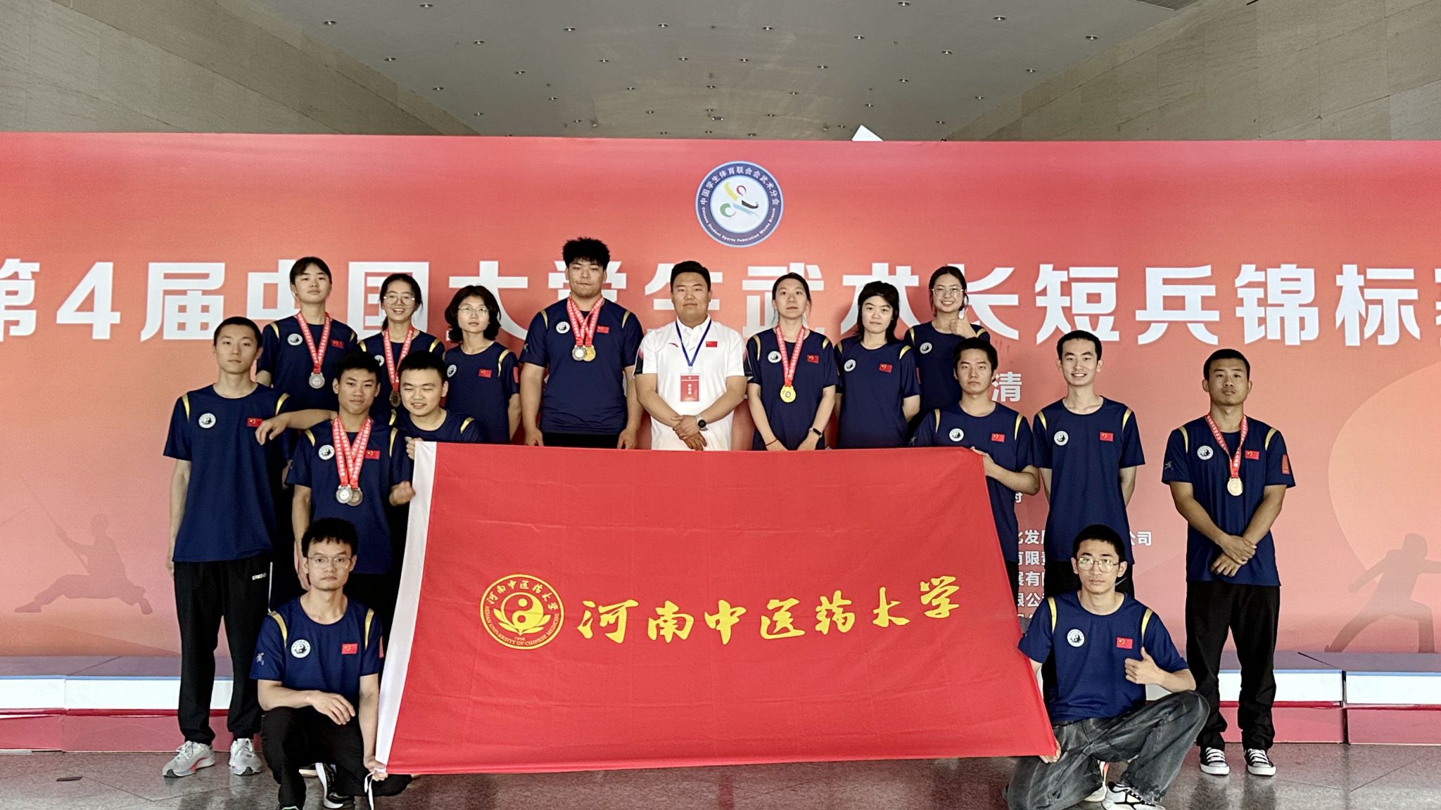本网讯(文/图 郝震)2024年5月25日,由中国学生体育联合会主办,中国学生体育联合会大学武术分会执行,天津市武术协会、天津市武清区体育局、天津市武清区武术协会承办的第四届中国大学生武术长短兵锦标赛盛大开幕。此次赛事是迄今为止全国规模最大的武术长短兵竞赛活动,全程使用智能电子护具,是中国武术竞赛智能化发展的一次重要探索,共有来自全国100余所高校的1000余名运动员参加了本次比赛,leyu·乐鱼(中国)体育官方网站武术长短兵代表队的15名队员在郝震老师的带领下首次参赛。