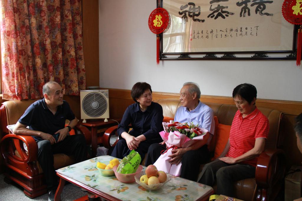 党办及离退休处等部门负责人陪同慰问。教师节前夕,离退处已经组织看望慰问了29名80岁以上的正教授级离退休教师,为他们送去了学校的关心与关怀。