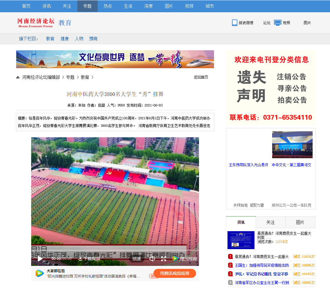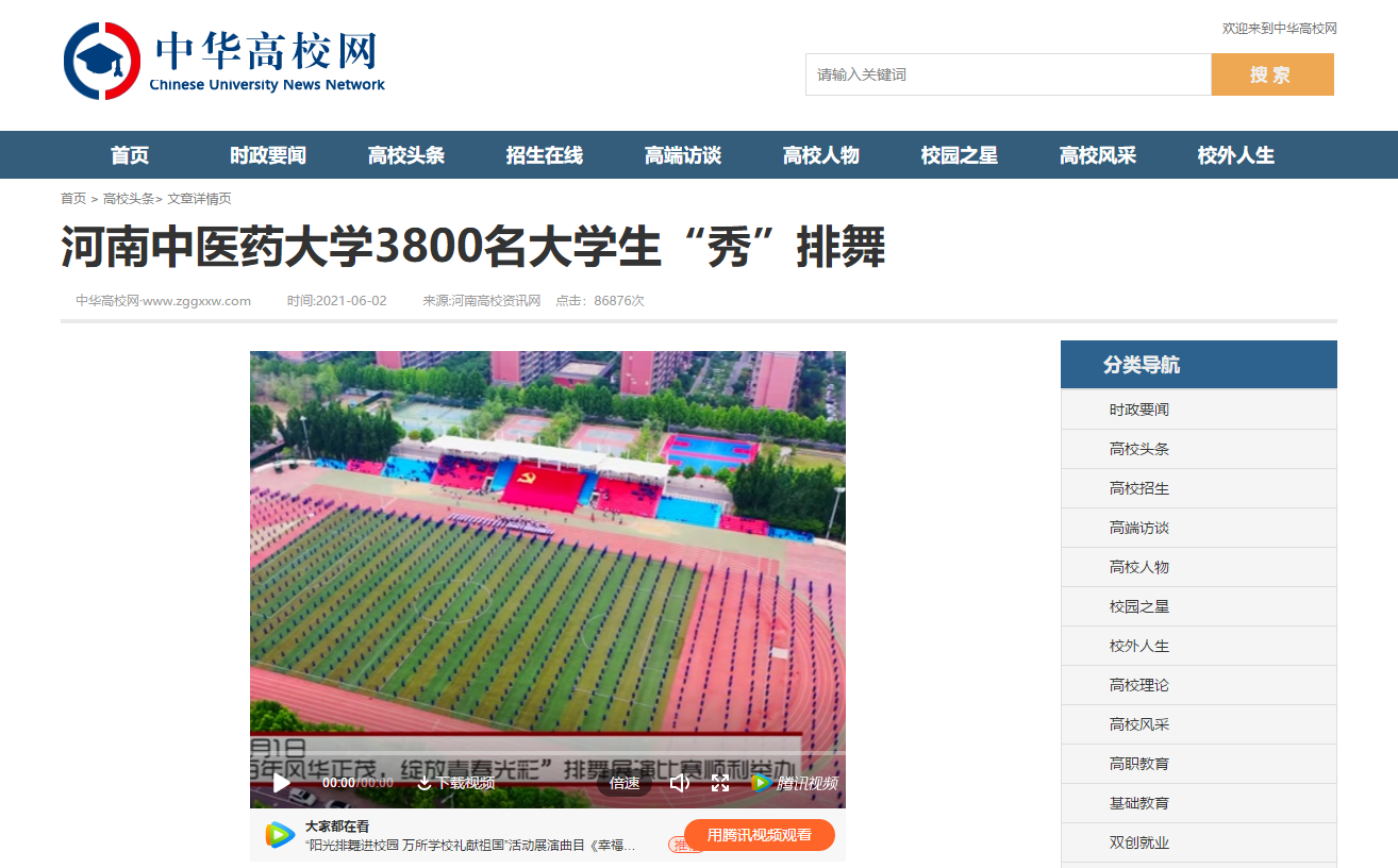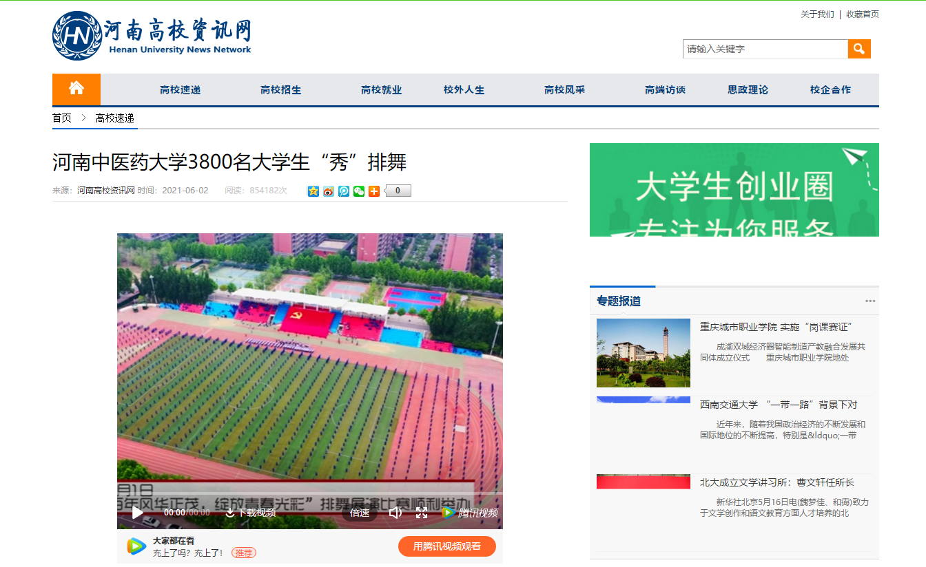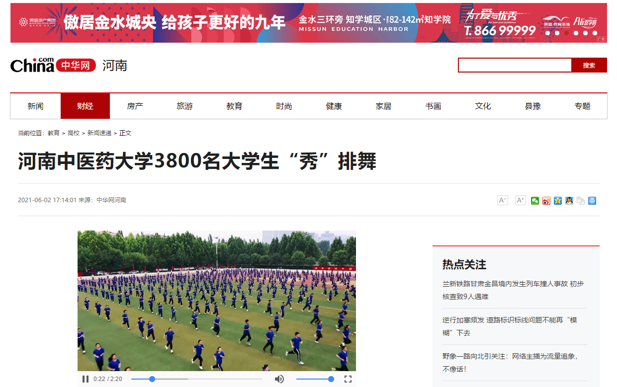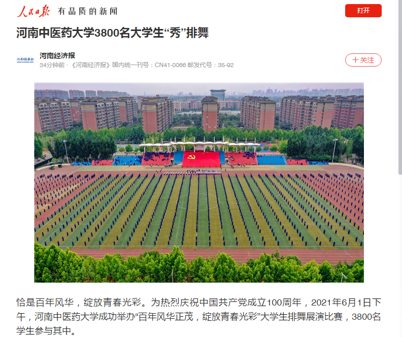 编者按:2021年6月2日-3日,人民日报客户端、中华网、中华高校网、河南高校资讯网、中新资讯网、新豫网、河南经济论坛、河南高校行等多家媒体对leyu·乐鱼(中国)体育官方网站3800名大学生参加“百年风华正茂 绽放青春光彩”大型排舞展演进行报道。