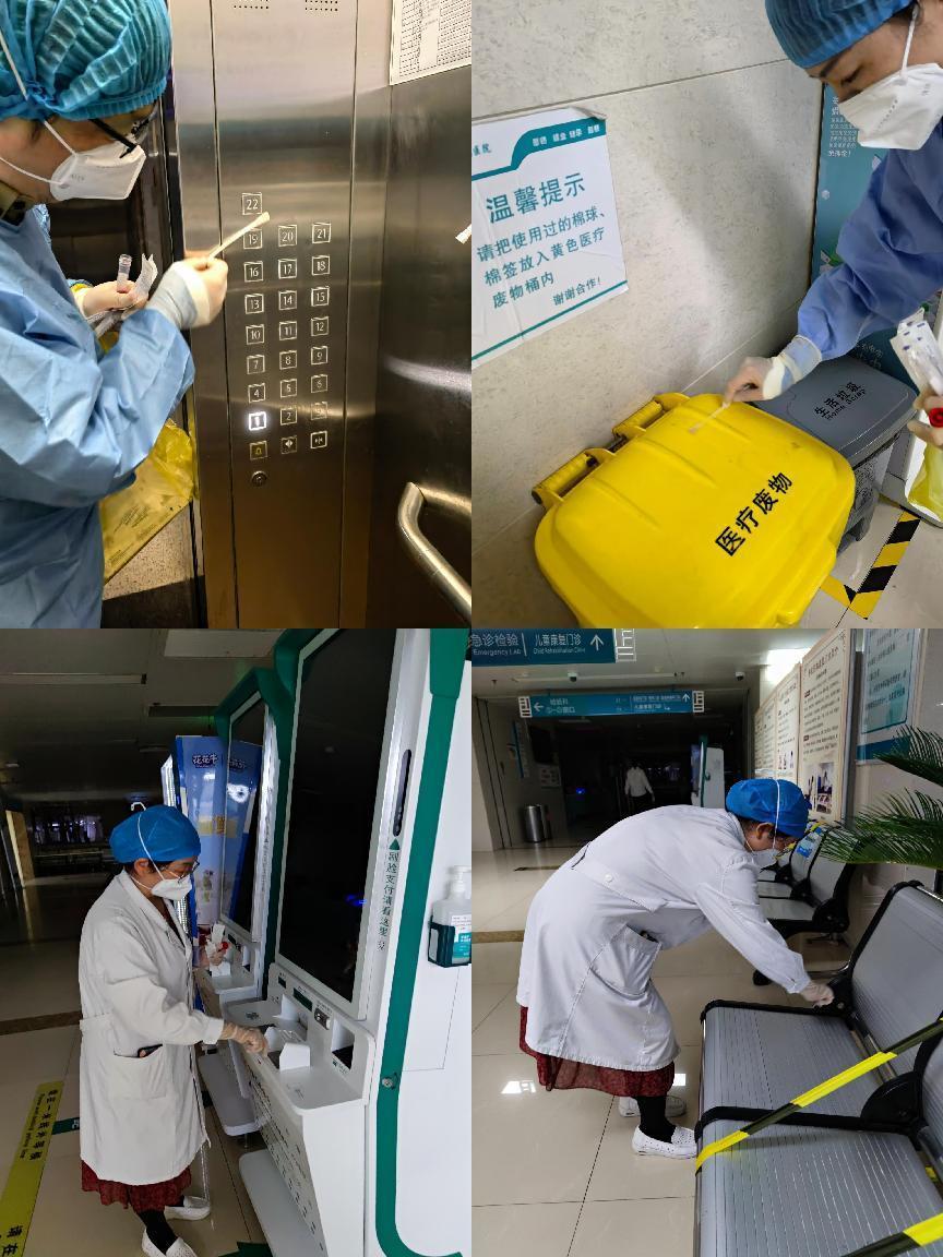 感控组按照“人、物、环境”三同链防的相关要求,连夜对院区所有区域进行环境物表采样,消杀组连夜对院区进行强化消杀。全力营造让患者放心、职工安全的诊疗工作环境。