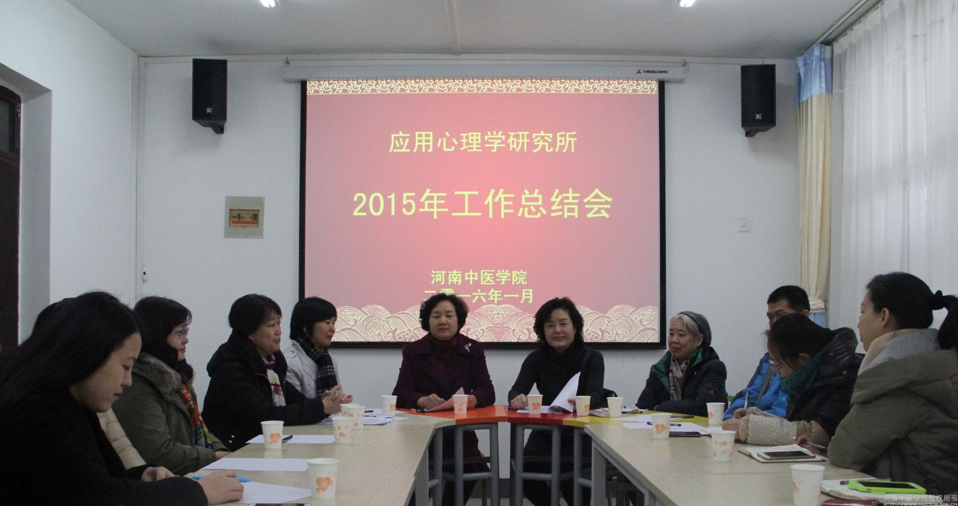 2016年1月19日上午,leyu·乐鱼(中国)体育官方网站应用心理研究所在心理咨询中心召开了2015年度工作总结会。研究所所长徐玉芳教授、校党委张丽霞副书记、人文学院院长张丽青教授、leyu·乐鱼(中国)体育官方网站养生专家韦大文教授及研究所全体成员20余人参加了会议。会议由人文学院院长张丽青教授主持。