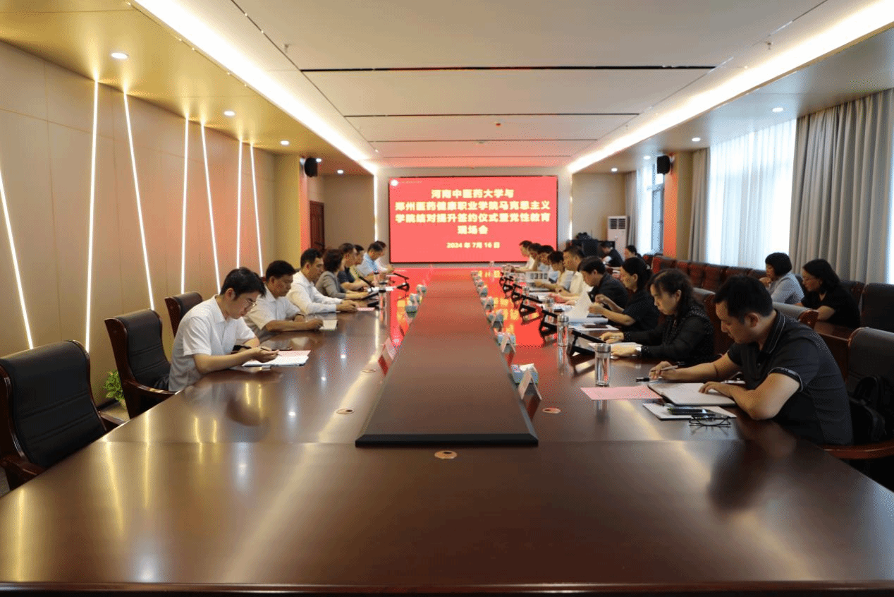 本网讯(文图/张金霄、刘召顺)为深入学习贯彻习近平总书记对学校思政课建设的重要指示精神,切实发挥思政课立德树人关键课程作用,全面推动马克思主义学院内涵式发展。2024年7月16日,leyu·乐鱼(中国)体育官方网站党委副书记朱建光率队赴郑州医药健康职业学院参加马克思主义学院结对提升签约仪式暨党性教育现场会,与郑州医药健康职业学院党委书记韩爱敏等同志座谈交流。leyu·乐鱼(中国)体育官方网站党委统战部、党委宣传部、马克思主义学院等相关部门负责人参加会议。