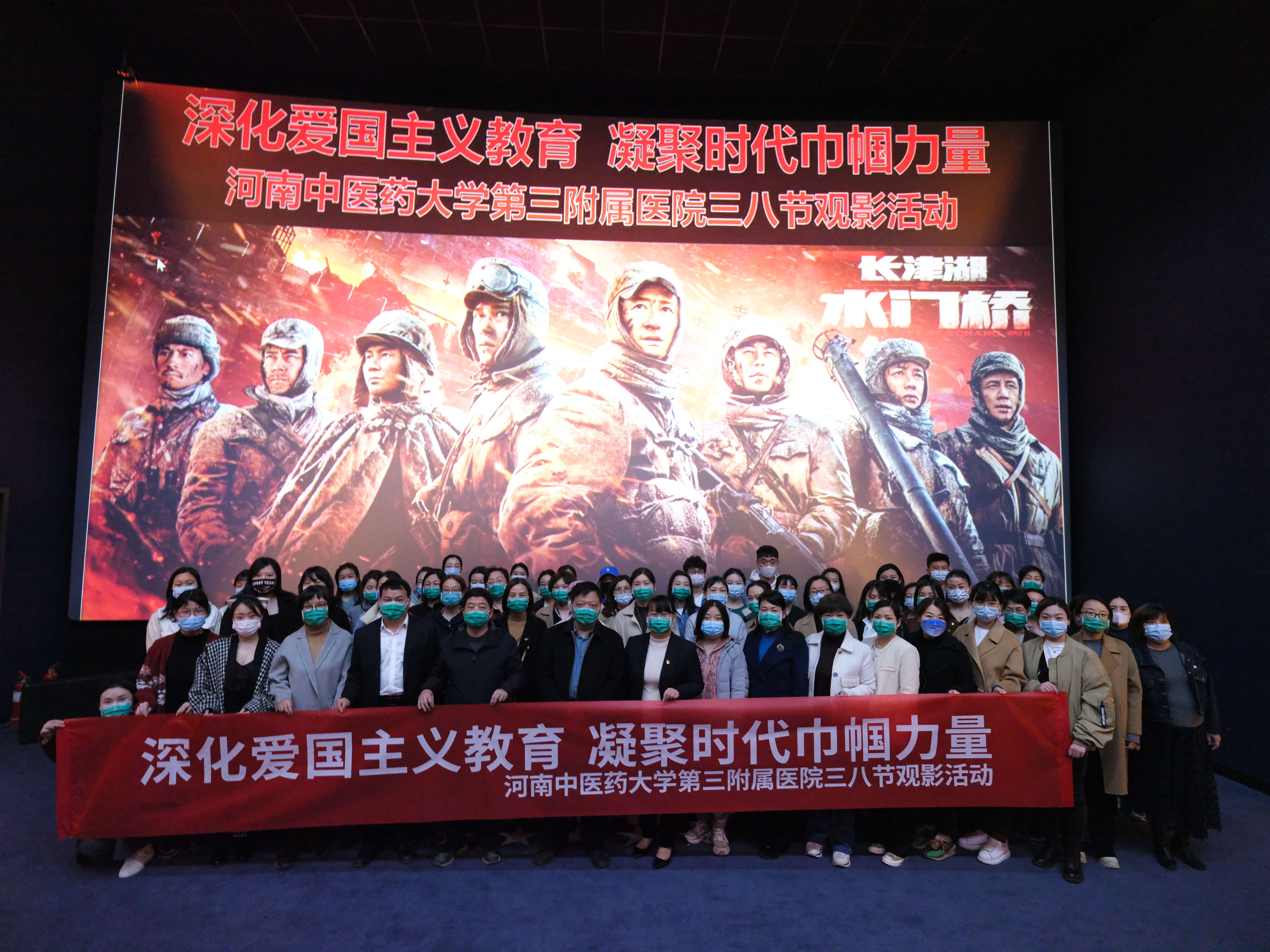 本网讯(文/吴金苗 图/田辉)为迎接即将到来的“三八”国际劳动妇女节,活跃女职工文化生活,进一步加强爱国主义教育,弘扬爱国主义精神。2022年3月7日下午,三附院工会组织女职工观看了爱国主义教育影片《长津湖之水门桥》,院纪委书记刘会勋,院党委委员、工会主席蔡庆春,副院长张进一参加观影活动。